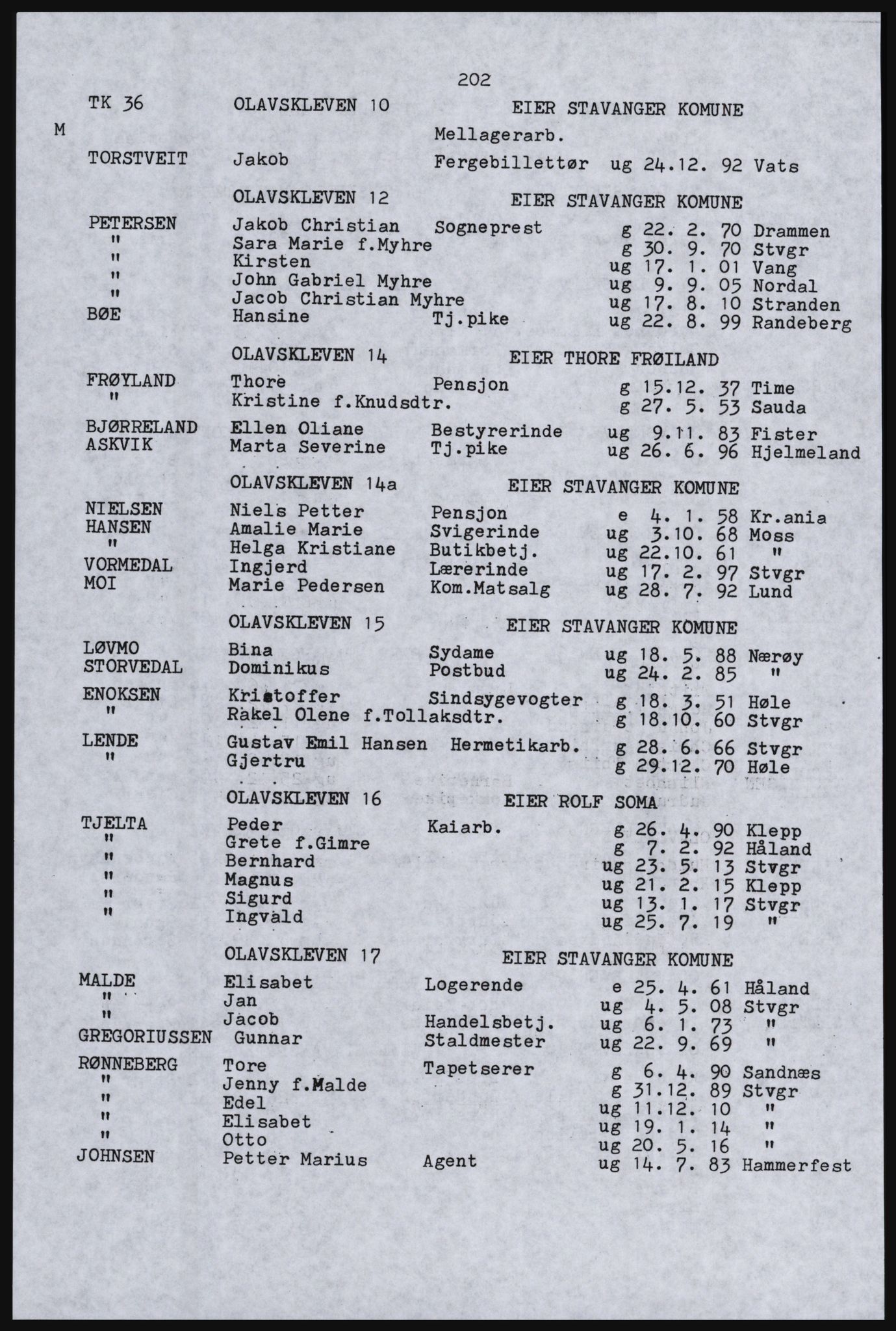 01.12.1920Rogaland county Stavanger muni. Maskinskrevet avskrift utarbeidet ved Statsarkivet i Stavanger. Omfatter Stavanger kjøpstad.Censuses1920 CensusPersonaliaState archivesDepartmental institutions