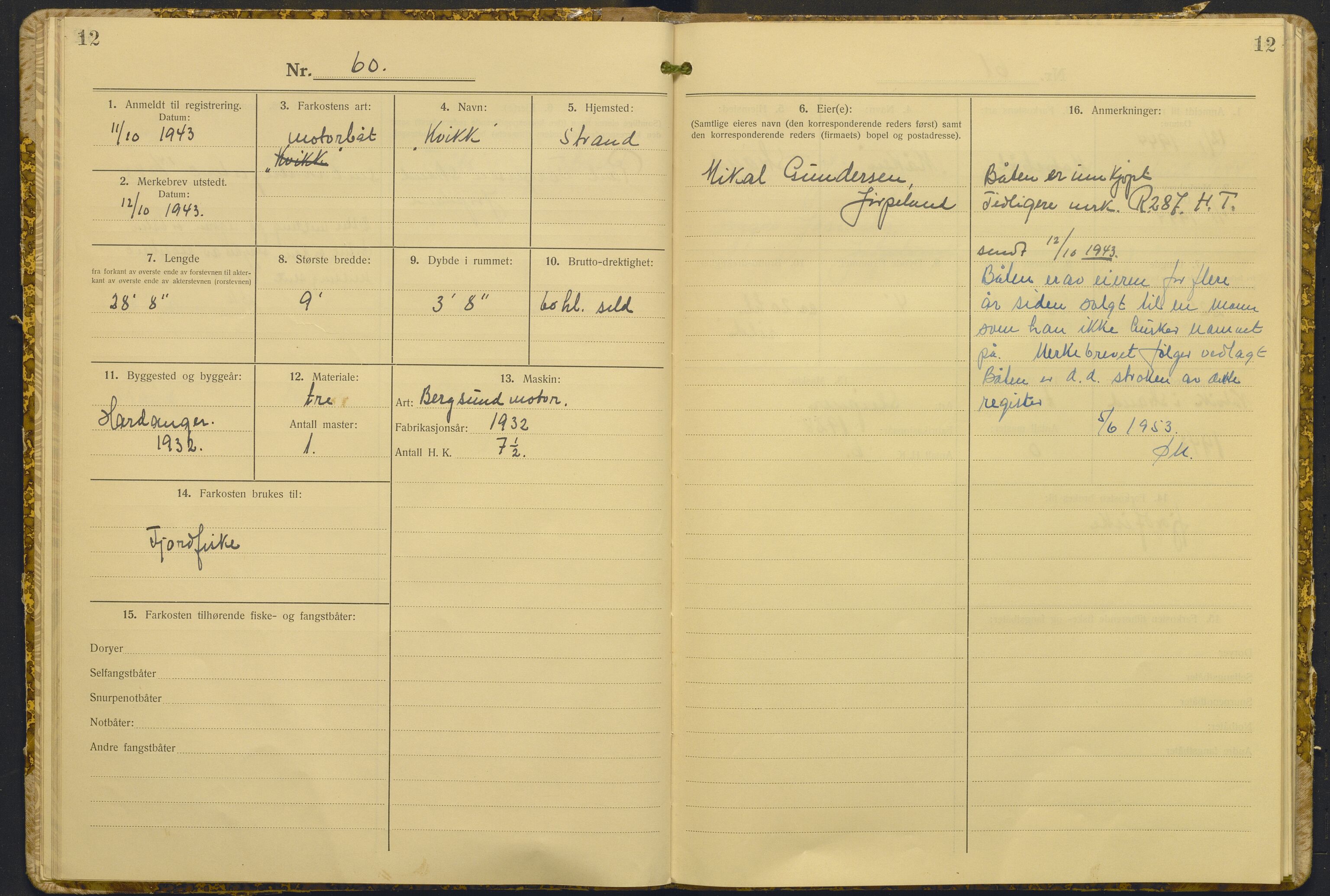 Fiskeridirektoratet (Båtkontoret), Merkeregisteret for fiskeriflåten - Rogaland, nr. 117: Merkeprotokoll for Strand, 1943-1947, Astaref: AV/SAB-A-2003/I/Ia/Iai/L0117
