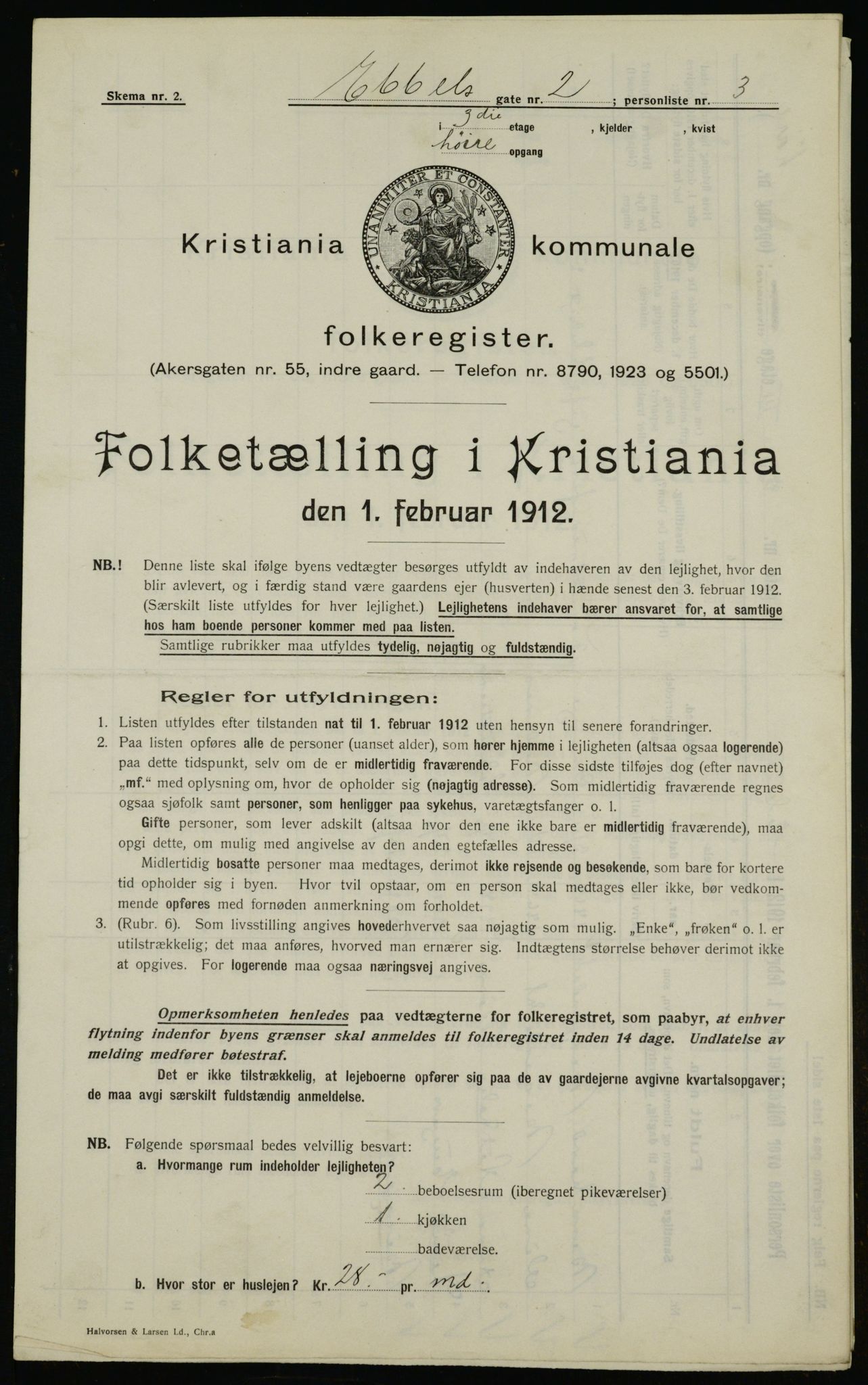 Kommunal folketelling 1.2.1912 for Kristiania, Astaref: OBA/A-20057/Gbk