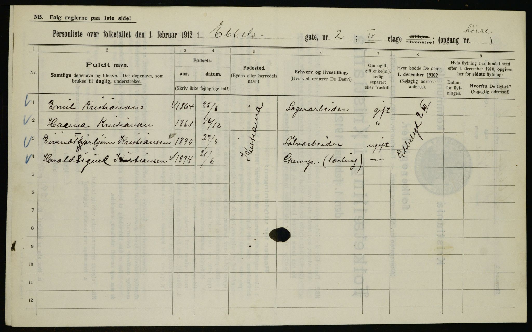 Kommunal folketelling 1.2.1912 for Kristiania, Astaref: OBA/A-20057/Gbk