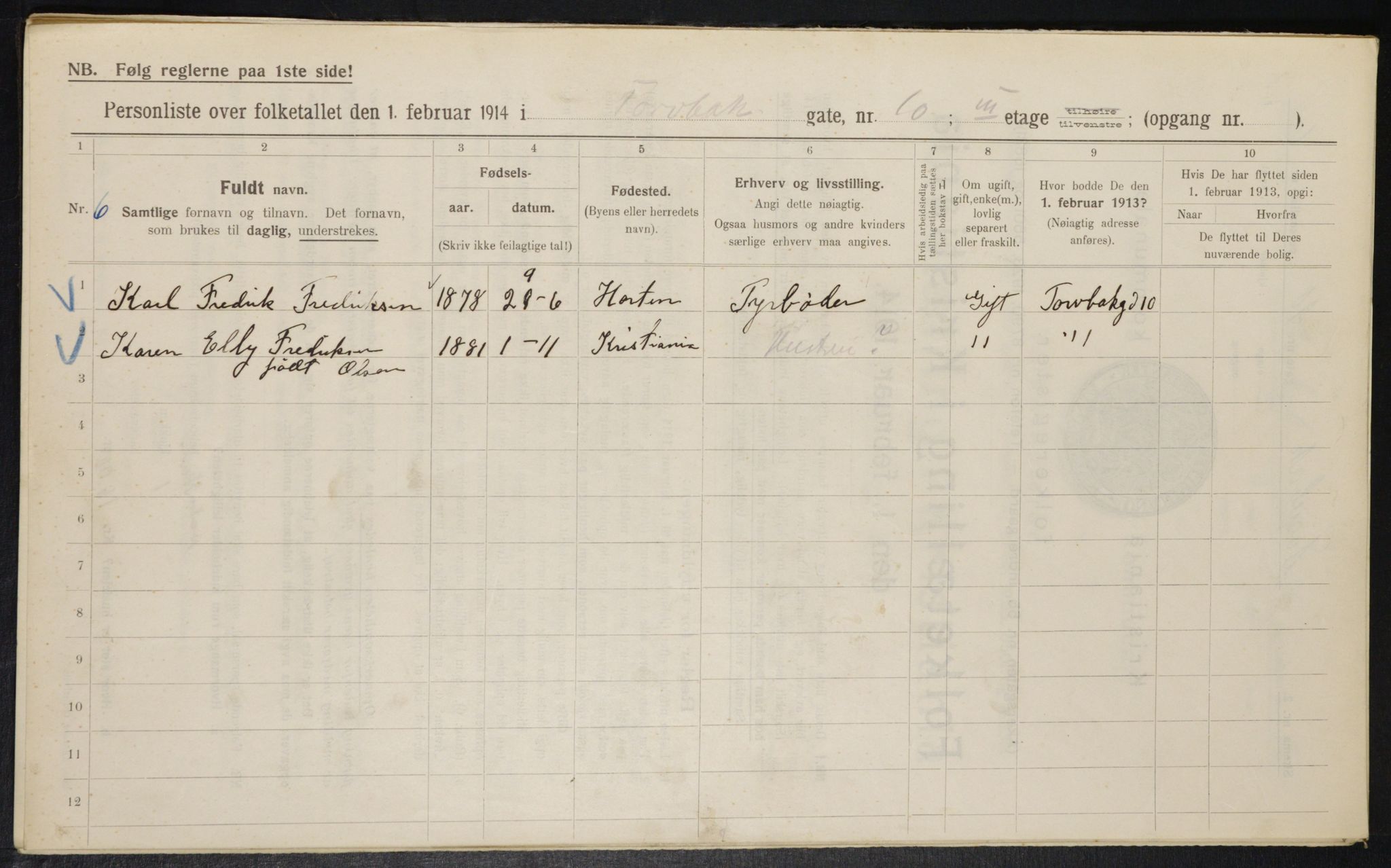 Kommunal folketelling 1.2.1914 for Kristiania, Astaref: OBA/A-20057/Gbm