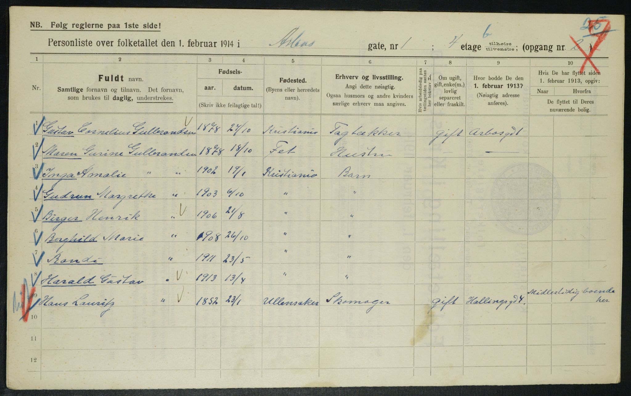 Kommunal folketelling 1.2.1914 for Kristiania, Astaref: OBA/A-20057/Gbm
