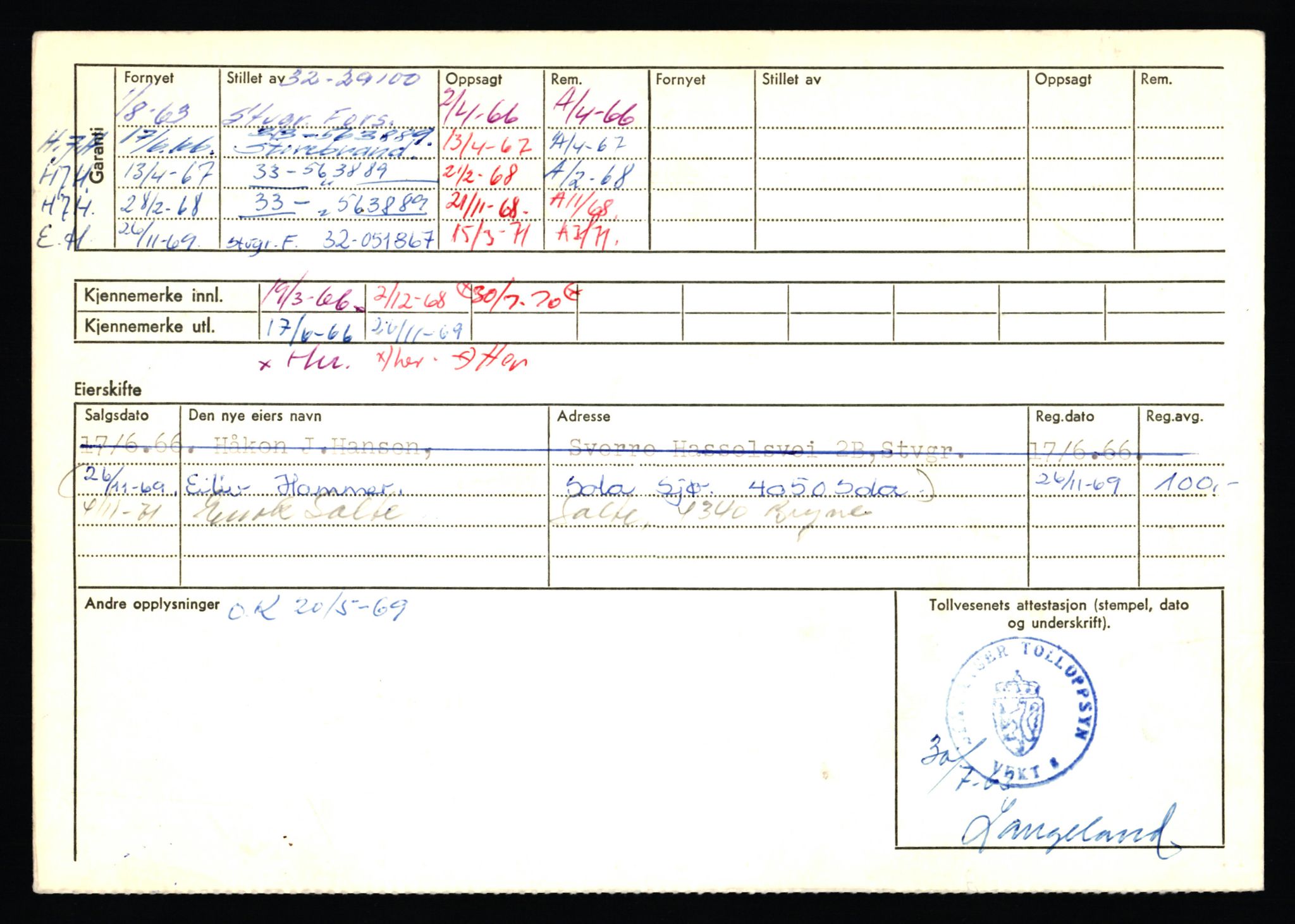 SAST-A-101942: Stavanger trafikkstasjon 0: Avlevering 1994 F: Dokumenter på kjøretøy L0011: L-3700 - L-4199 Annen kilde