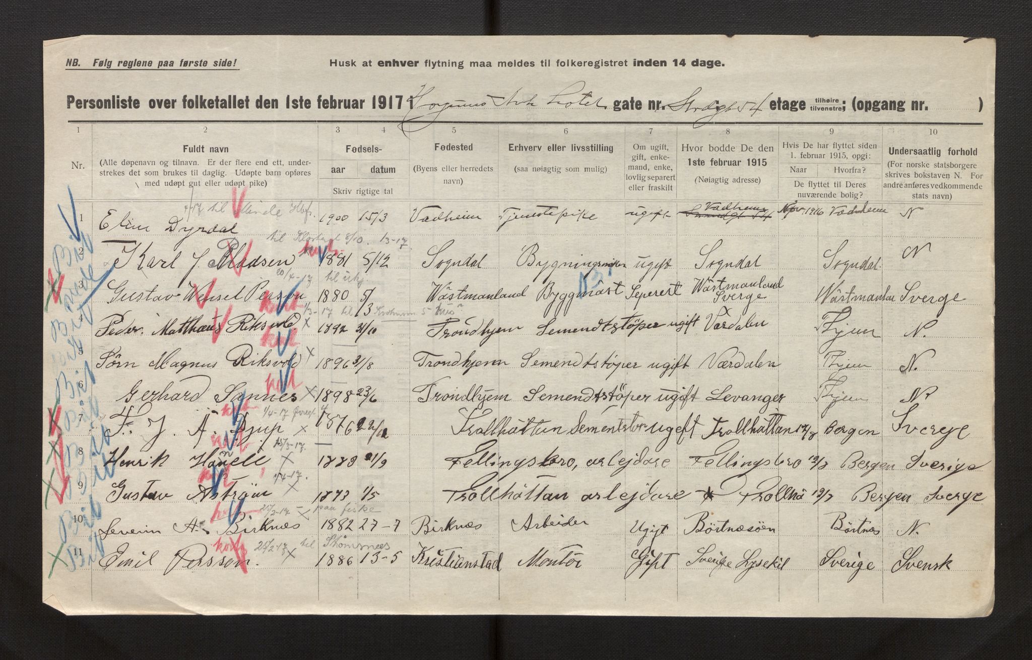 Fb: Bergen kommunale folketelling 1917