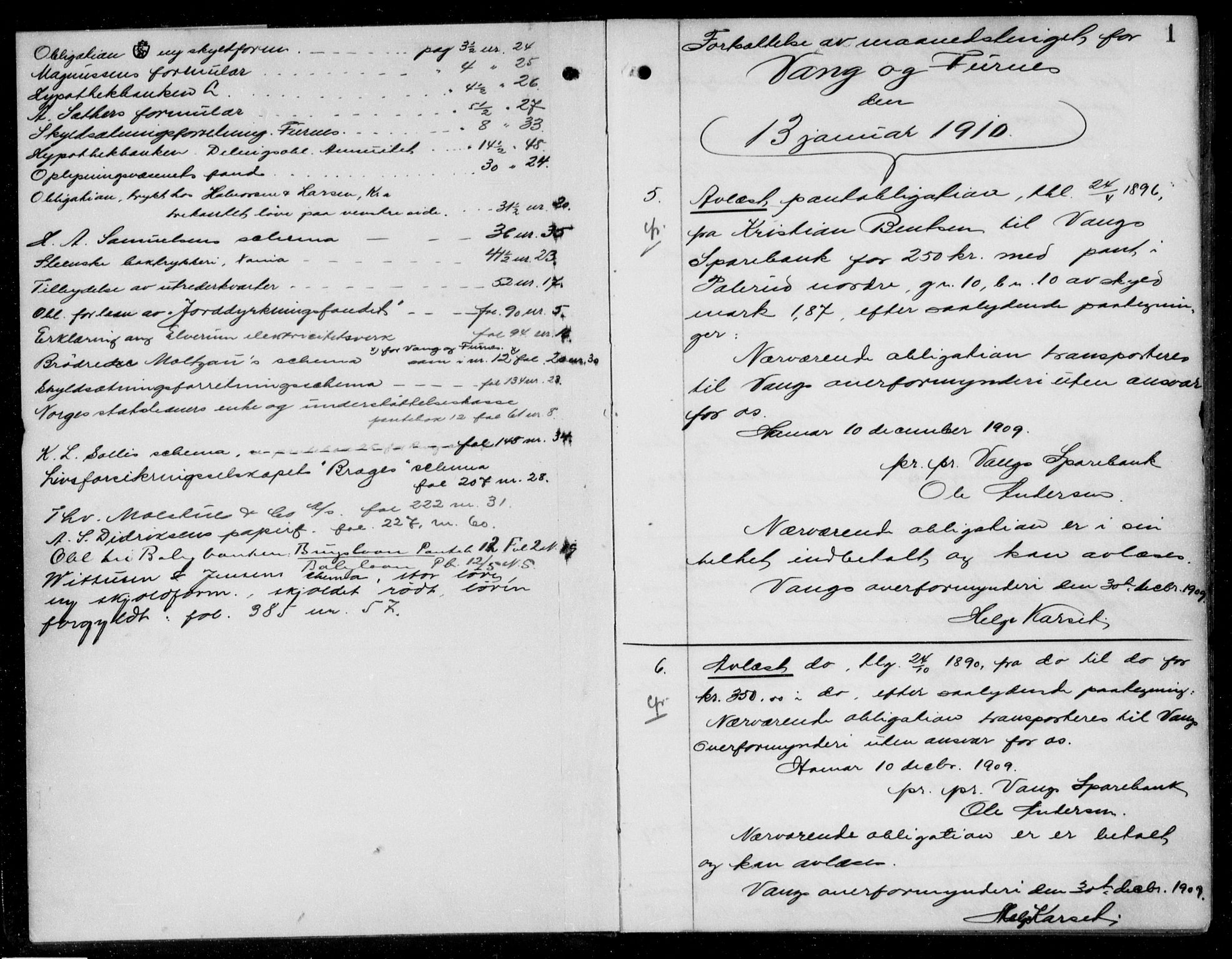 Pantebok for Nord-Hedmark sorenskriveri, Vang, Furnes tinglag 1910-1912, Astaref: AV/SAH-TING-012/H/Hb/Hbd/L0013