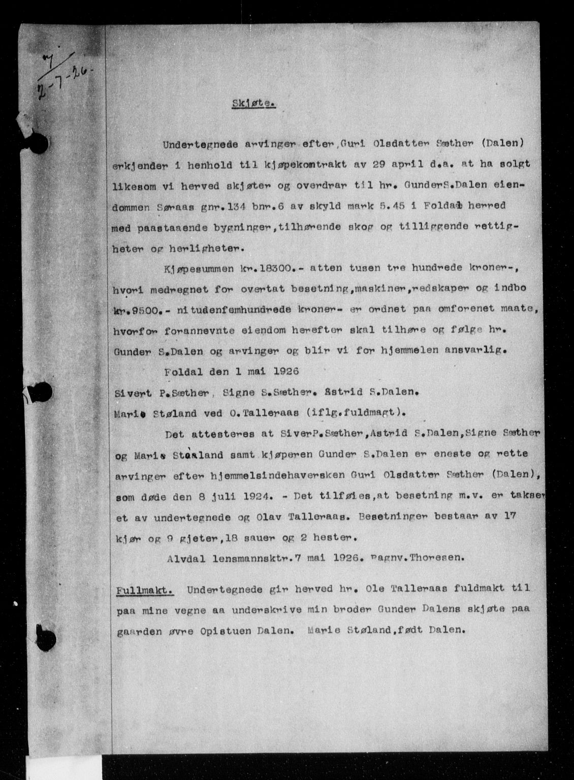 Pantebok for Nord-Østerdal sorenskriveri 1925-1927, Astaref: AV/SAH-TING-020/H/Hb/Hba/L0033B