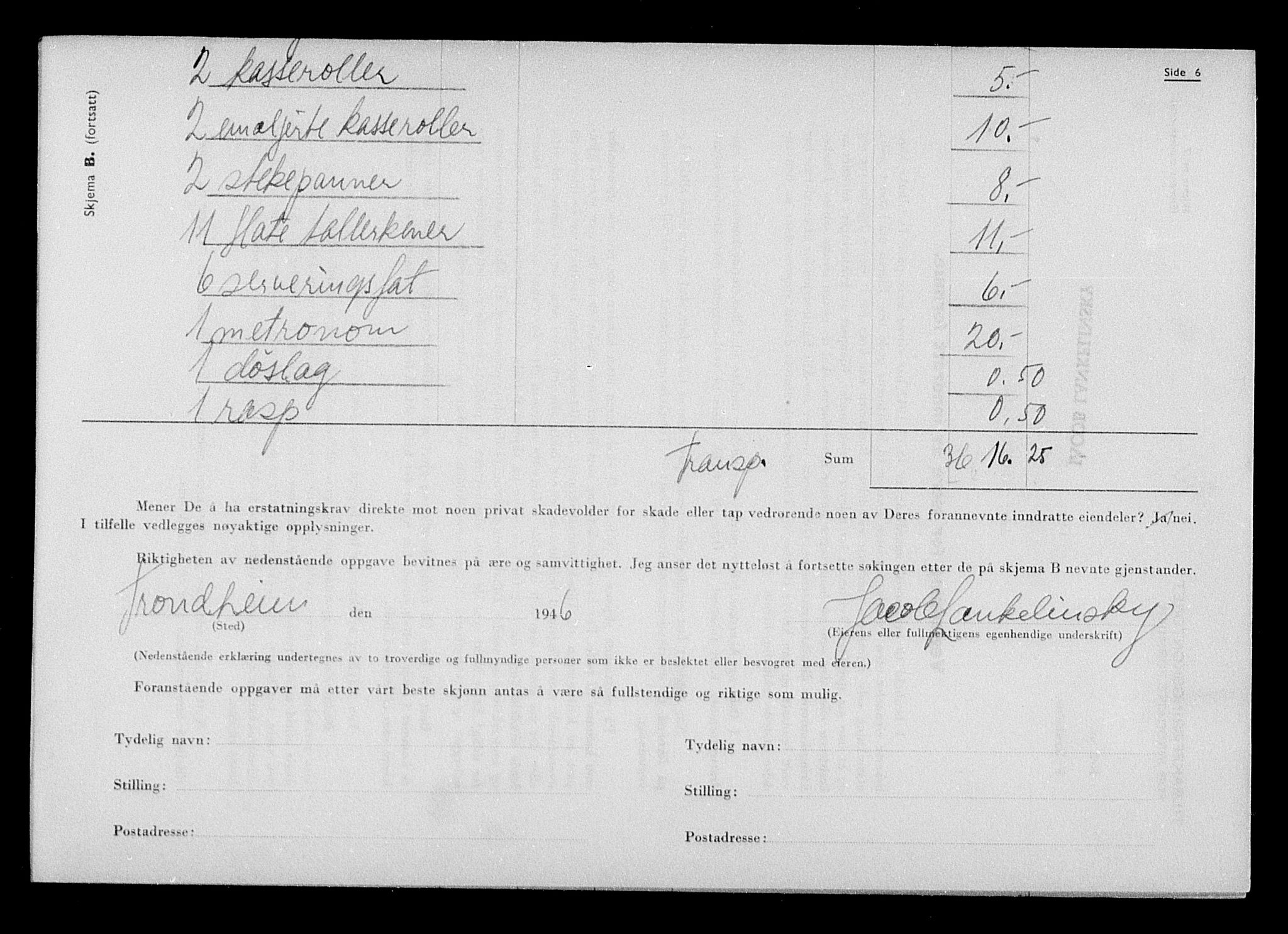 RA-S-1564: Justisdepartementet, Tilbakeføringskontoret for inndratte formuer H: LIKVIDASJONSSTYRETS "BOMAPPER"MED TILKNYTTEDE KARTOTEK OG REGISTRE Hc: E.III. JØDEBOER Hca: E.III. Jødeboer nordenfjeldske avdeling Trondheim L0903: -- Jødebo