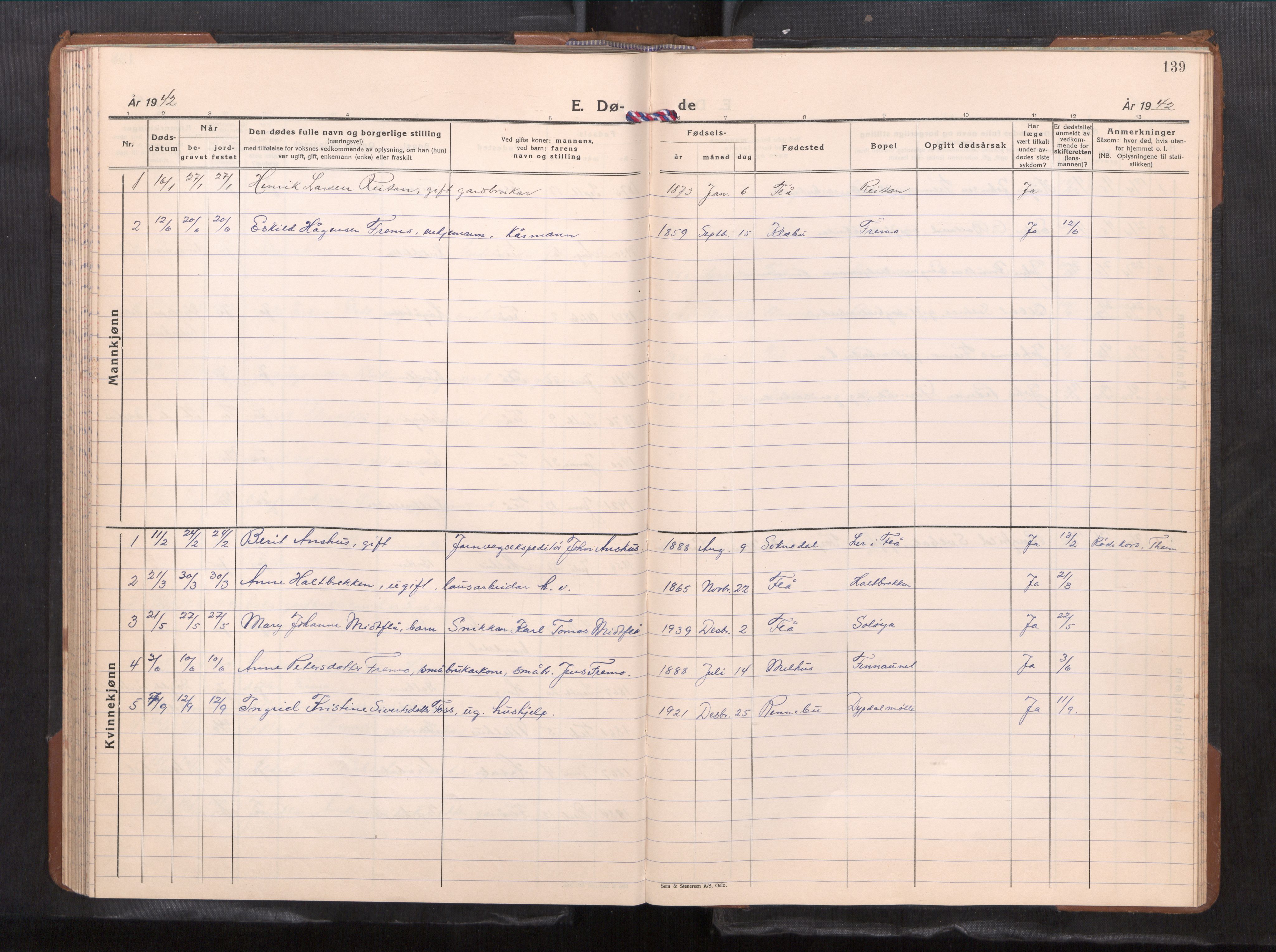 Klokkerbok for Melhus prestegjeld, Flå sokn 1938-1966, Astaref: AV/SAT-A-1456/693/L1125