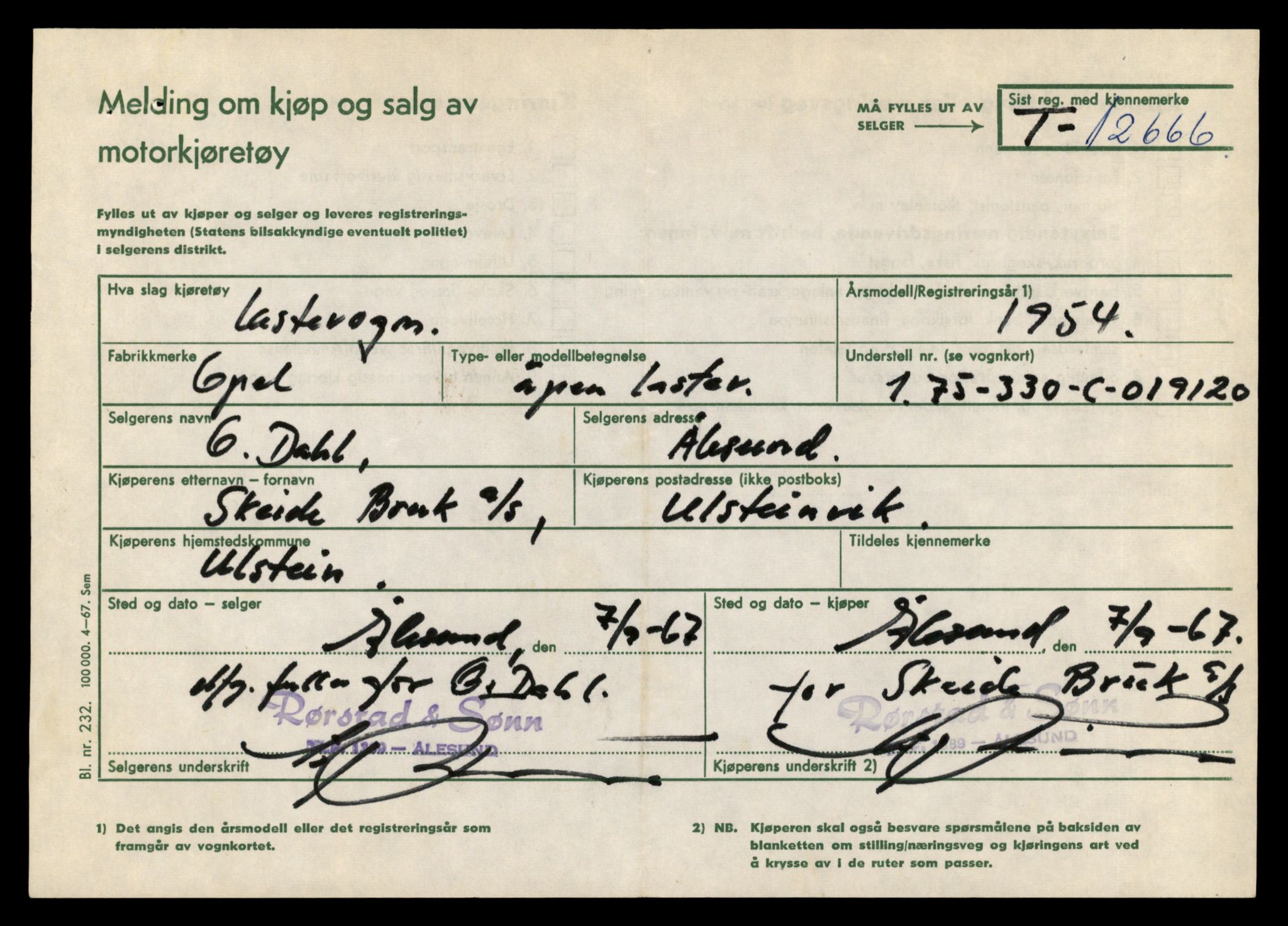 SAT-A-4099: Møre og Romsdal vegkontor - Ålesund trafikkstasjon F: Bilregister Fe: Registreringskort for kjøretøy L0035: Registreringskort for kjøretøy T 12653 - T 12829 Annen kilde