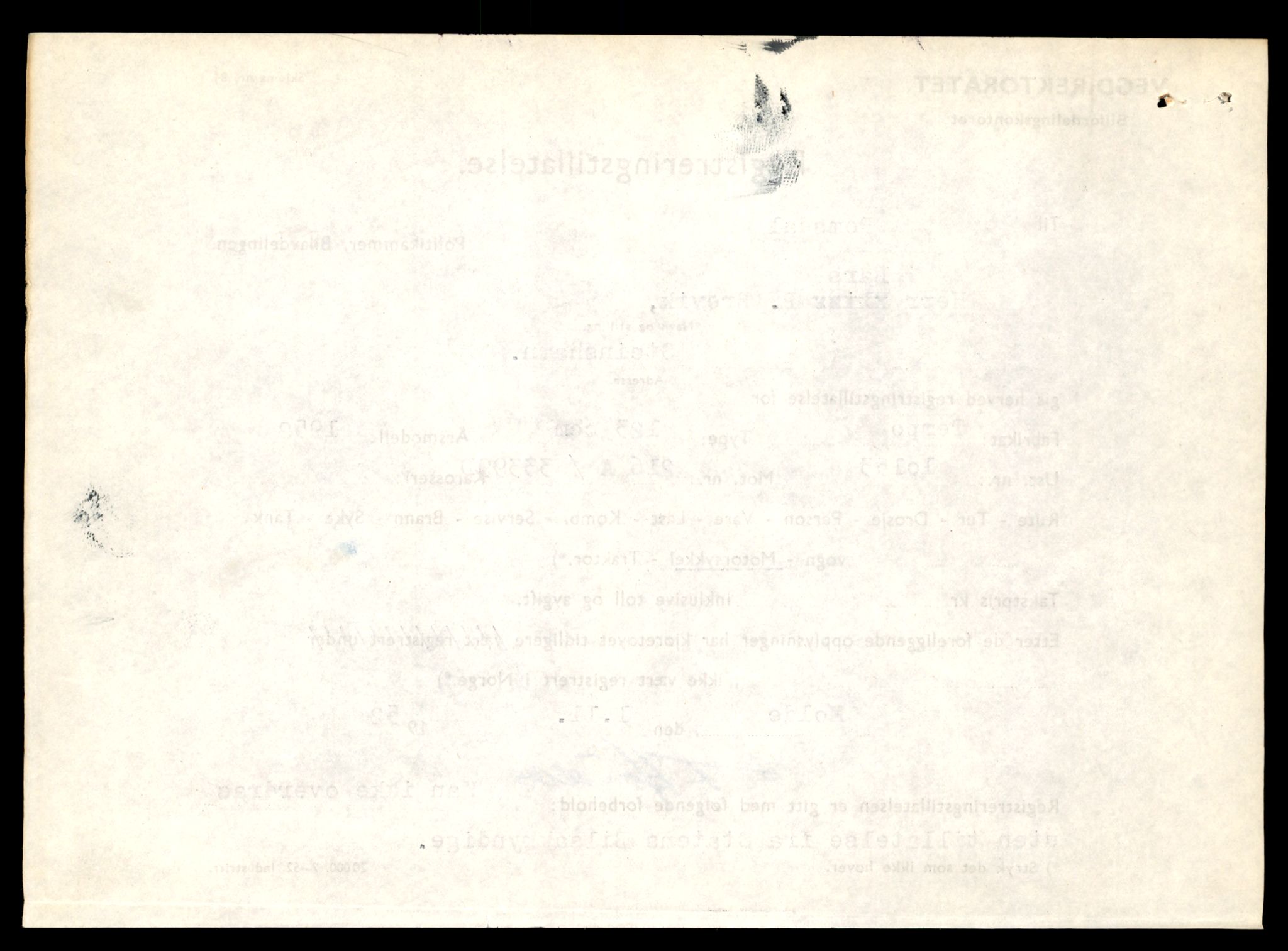 Fe: Registreringskort for kjøretøy