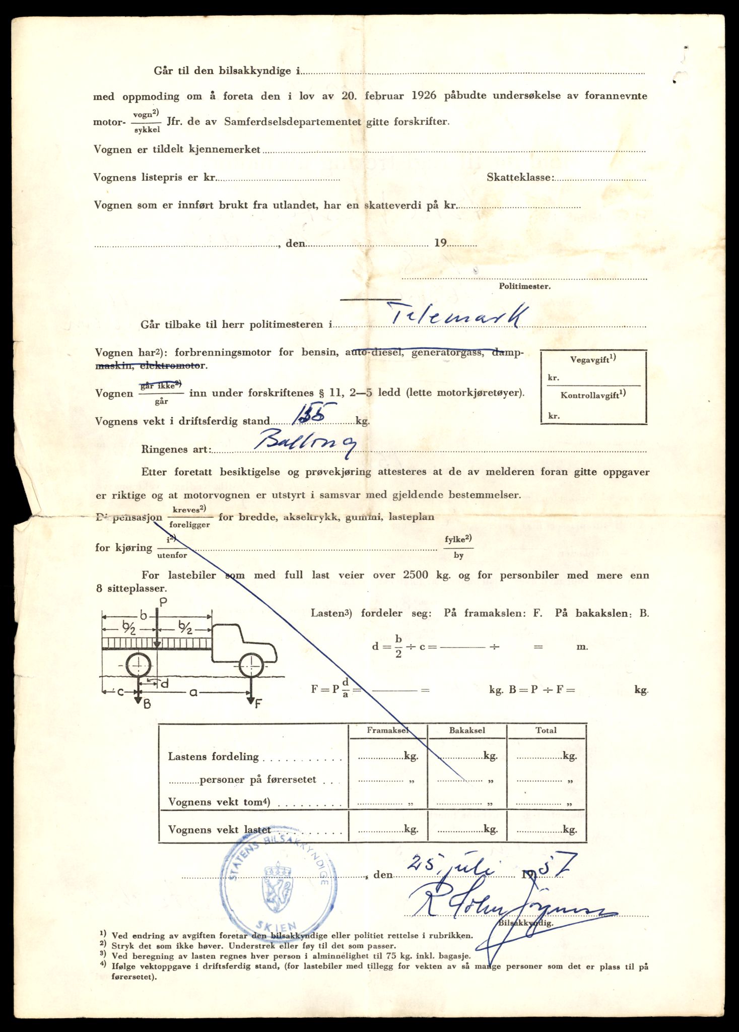 Fe: Registreringskort for kjøretøy