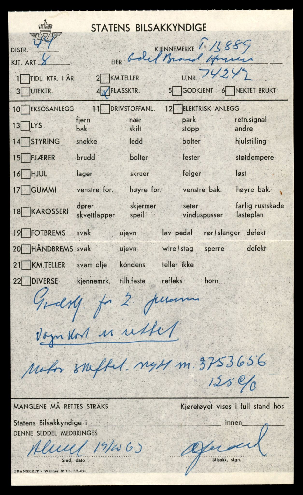 L0041: Registreringskort for kjøretøy T 13710 - T 13905