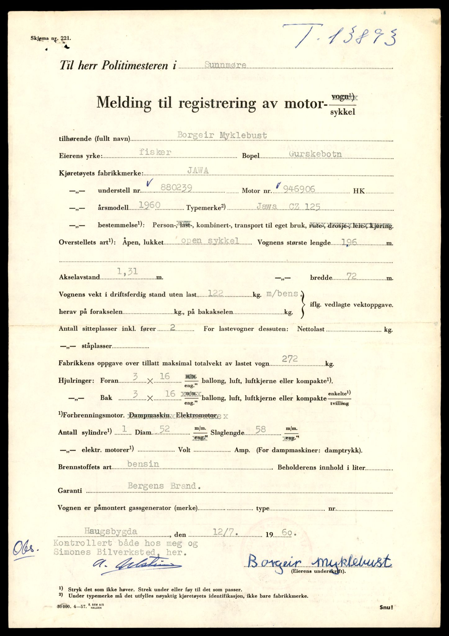 L0041: Registreringskort for kjøretøy T 13710 - T 13905