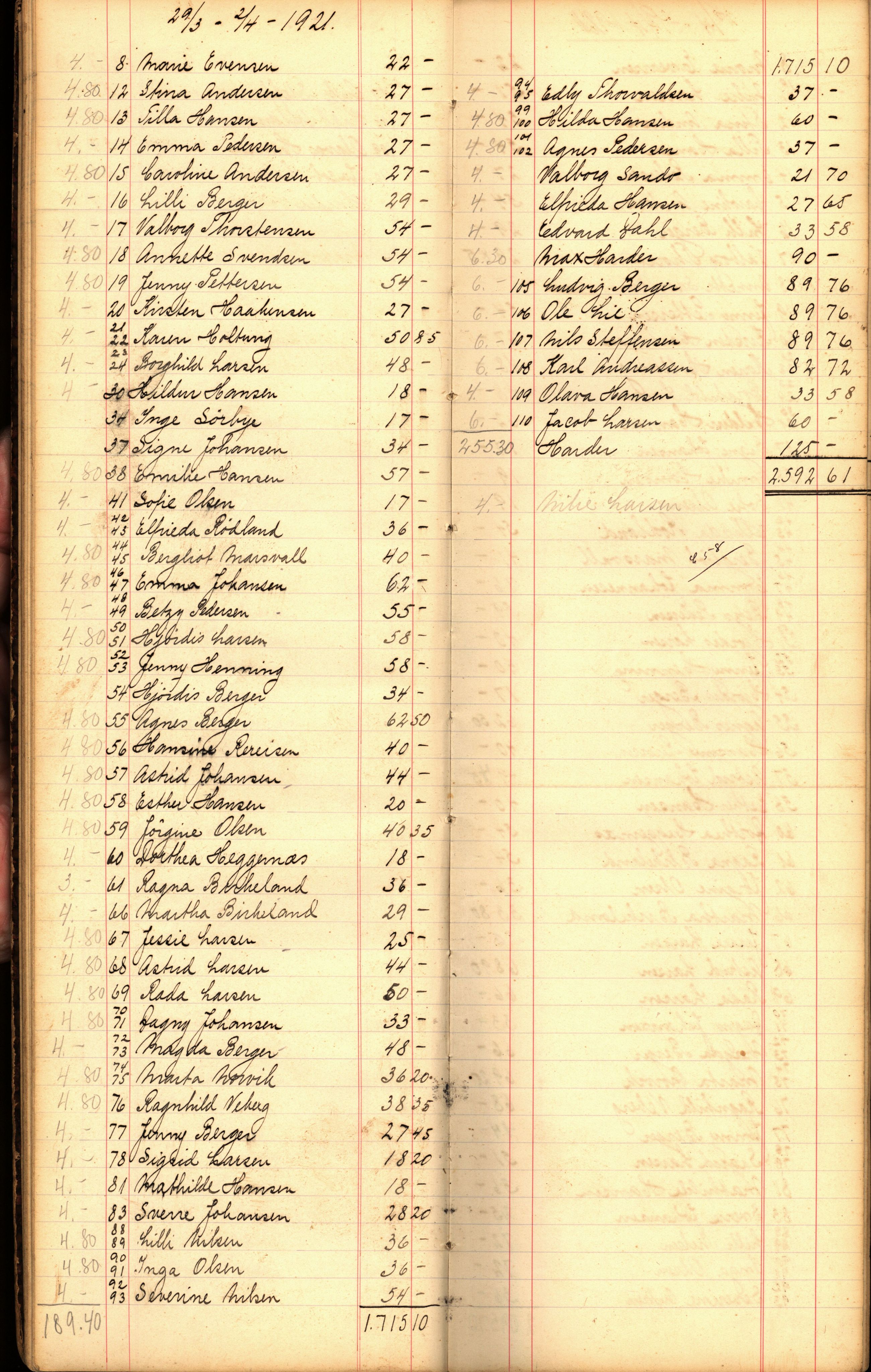 Berger og Fossekleven Fabrikker. Lønn og personal, Astaref: VEMU/NJM-A-1001/P/Pa/L0002