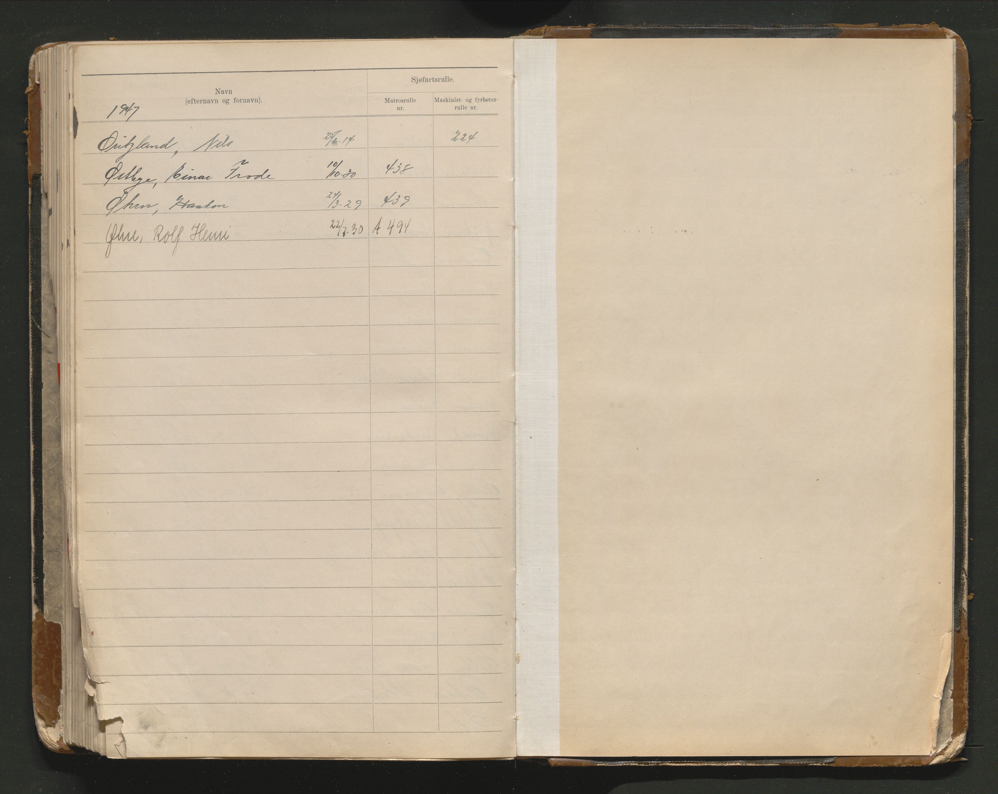 Tønsberg innrulleringskontor, Navneregistre, nr. 3: Register til matros-, maskinist- og fyrbøterruller, 1934-1948, Astaref: AV/SAKO-A-786/G/Ga/L0003