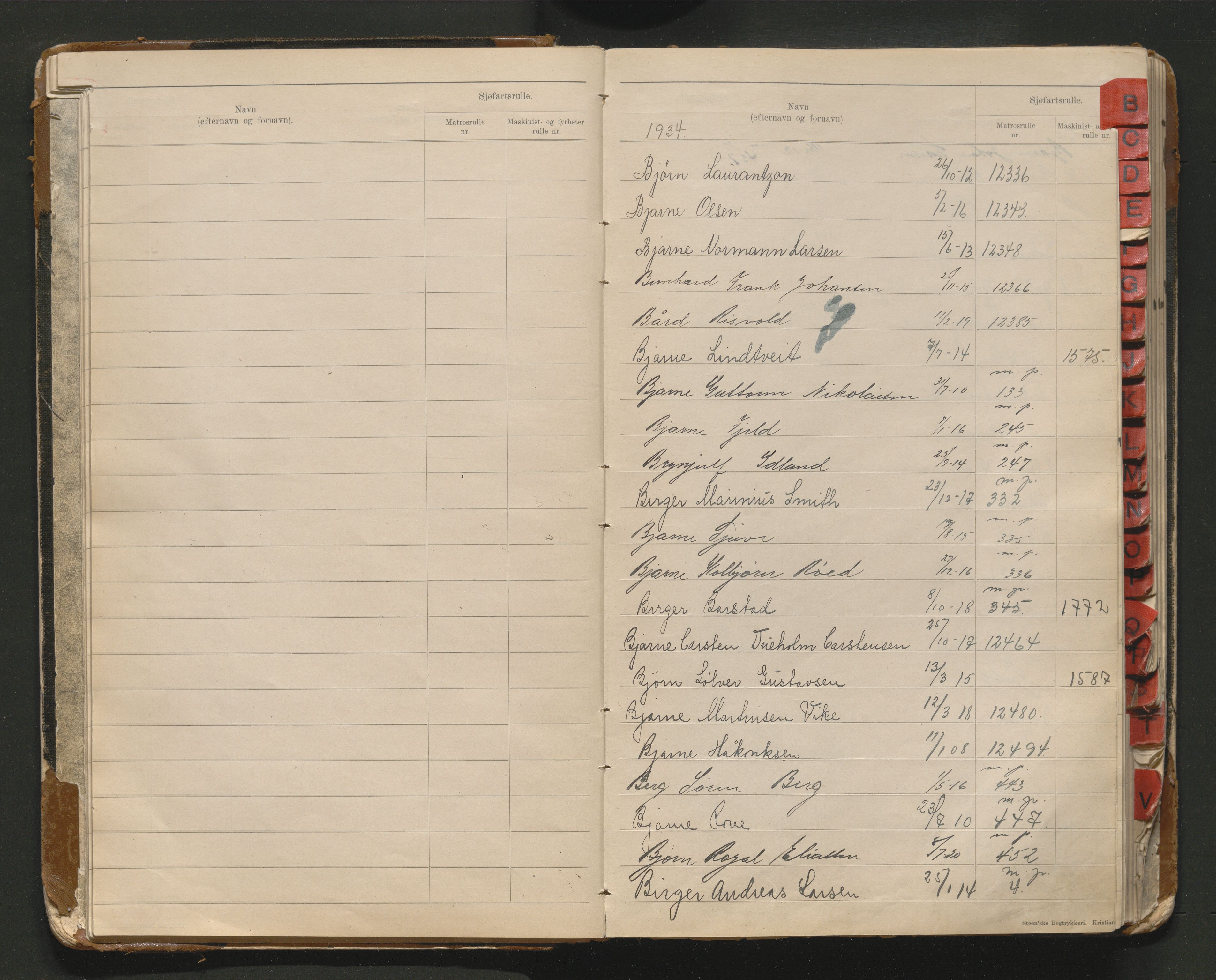 Tønsberg innrulleringskontor, Navneregistre, nr. 3: Register til matros-, maskinist- og fyrbøterruller, 1934-1948, Astaref: AV/SAKO-A-786/G/Ga/L0003