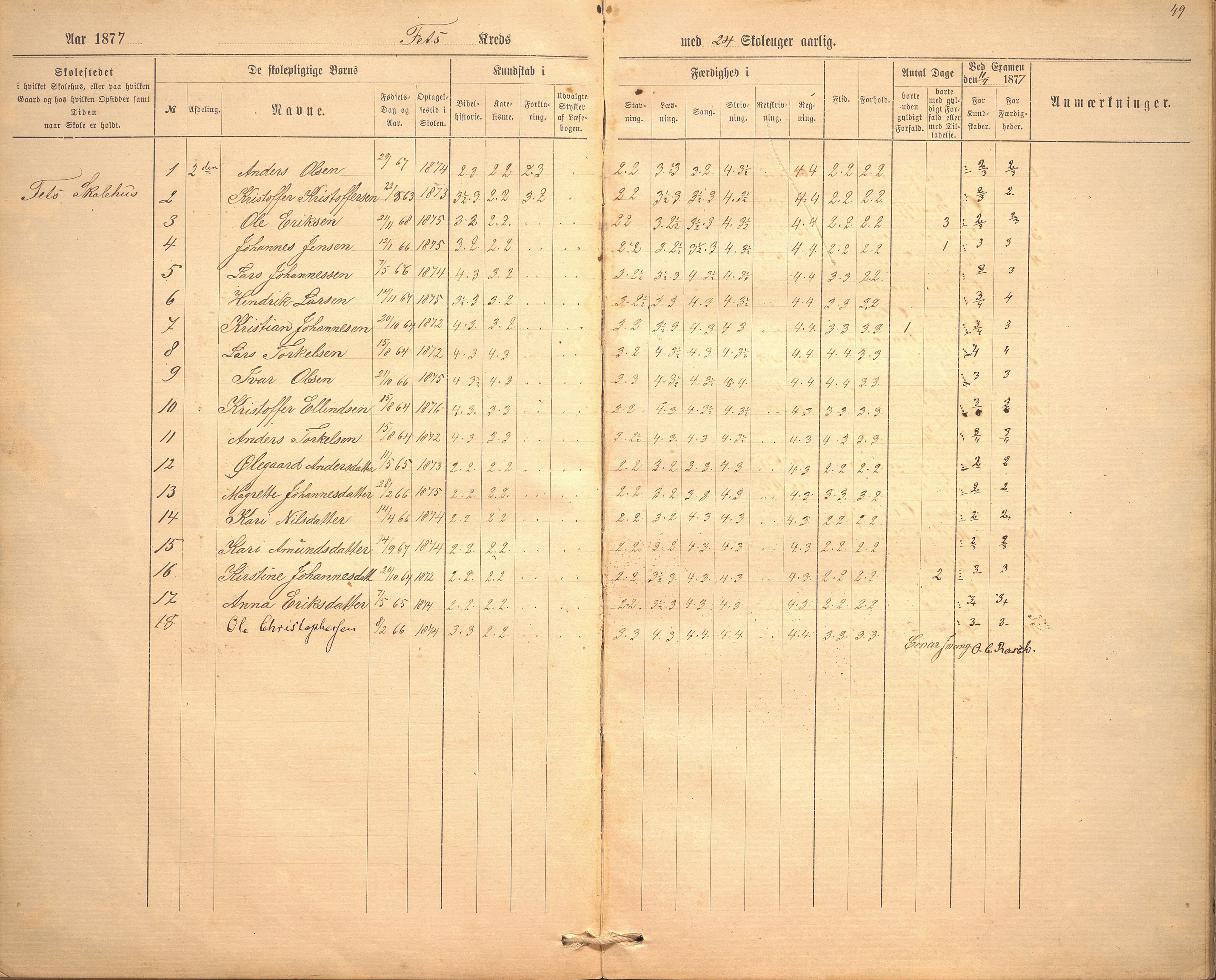 Skuleprotokoll for Fet skule og Eikestranden krins, 1876-1900, Astaref: VLFK/K-14250.520.04/542/L0001