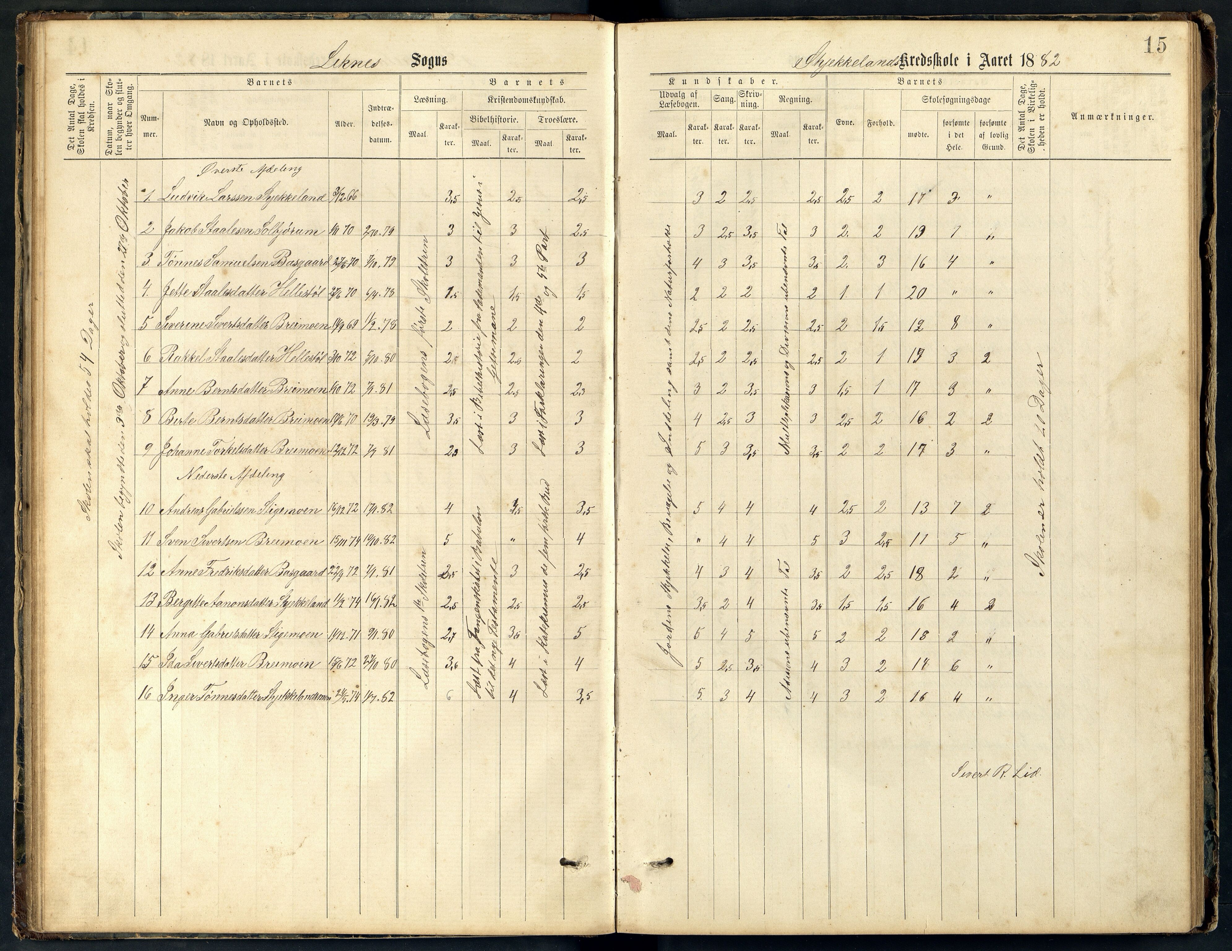 nr. 1 /1878 - 1891-Kilden er skannet av frivillige fra Slekt og data Vest-Agder : Hugo Larsen, Gunnar Ole Gundersen, Agnar Merkesnes, Signe F. Stranden, Eivind Svein Strømsøyen og Jan Wikøren.Kommunale arkiverSkolevesen