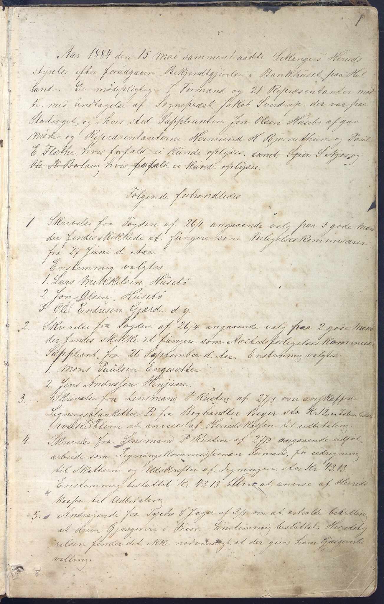 Møtebok for kommunestyret og formannskapet i Leikanger kommune, 1884-1902, Astaref: VLFK/K-14190.150/100/L0004