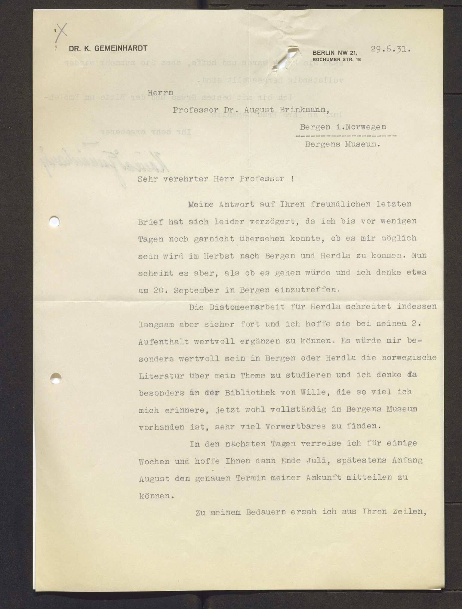 nr. 2 /1928 - 1940--SakarkivBrev og korrespondanseForskning og vitenskapStatlige arkiverUniversiteter og høyskolerMuseumBergens Museum 200 år