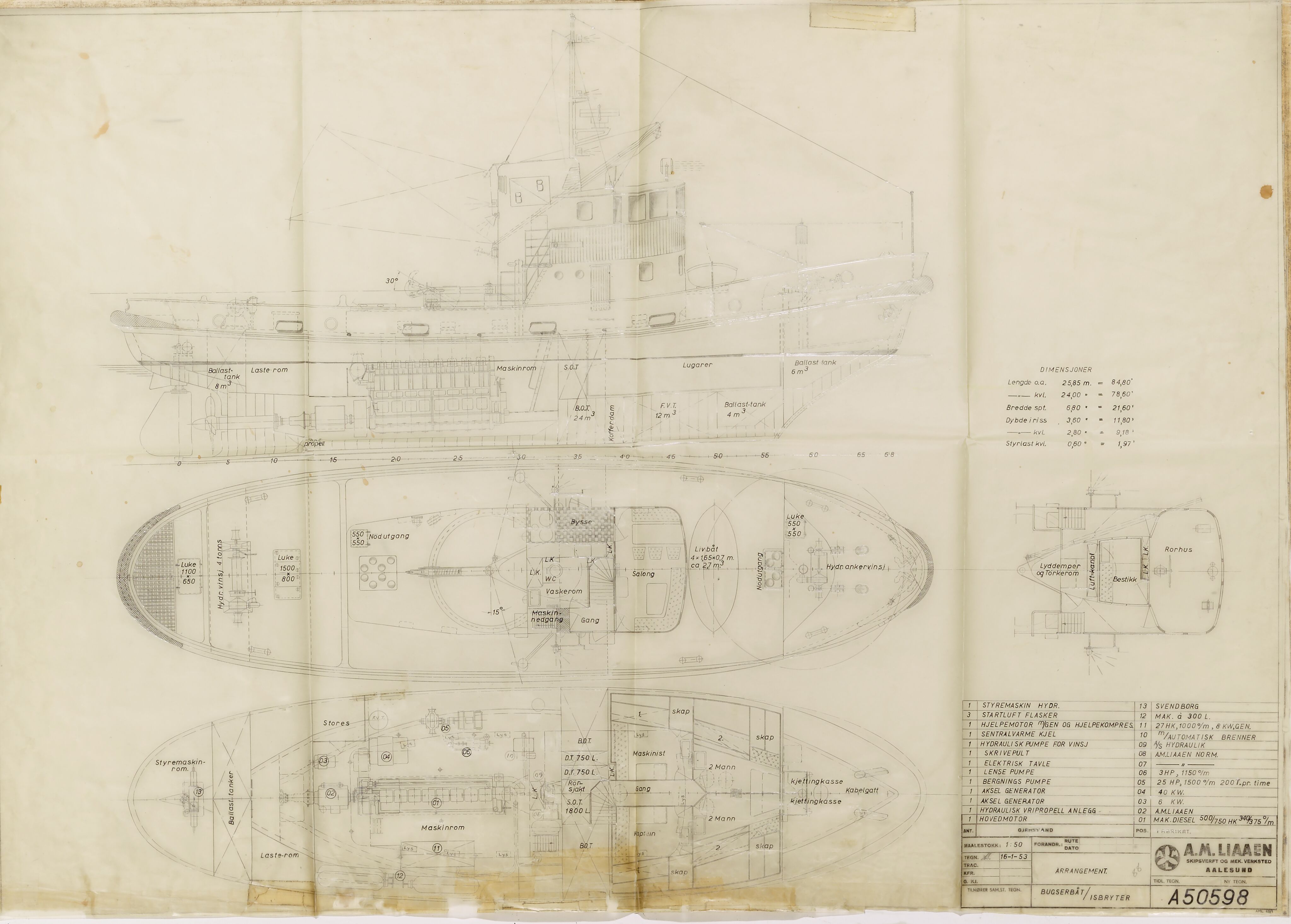 P-00090: A.M. Liaaen T: Tegningsarkiv Tb: Tegninger til skip Tbd: Diverse skipstegninger A1-format (register i Taa: 5, Taa: 6 og Taa: 7) L0013: Diverse skipstegninger Tegninger