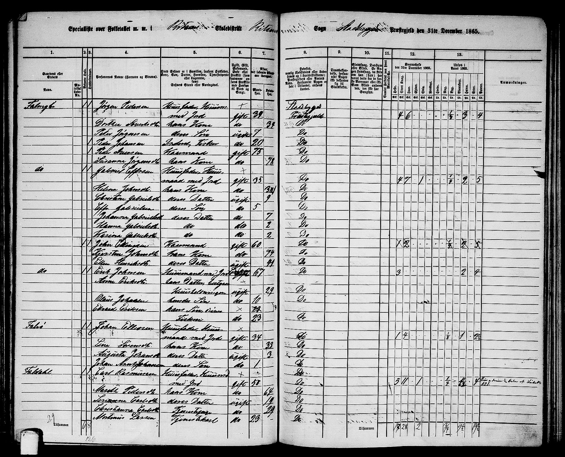 Folketelling 1865 for 1625P Stadsbygd prestegjeld, Astaref: AV/RA-S-2231