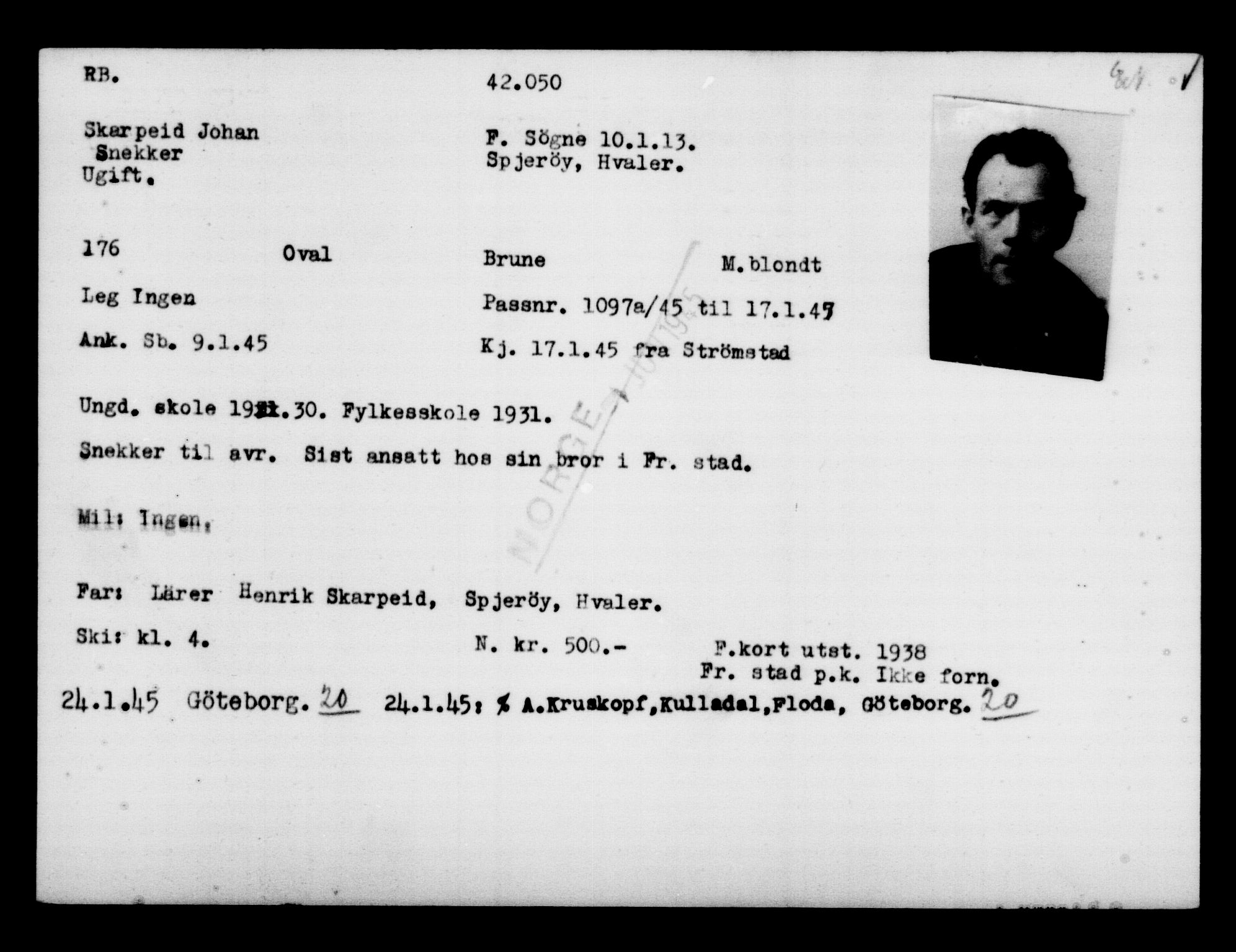 RA-S-6753: Utenriksstasjonene, Legasjonen i Stockholm, Flyktningkontoret V: Mikrofilm Va: Kjesäterkartoteket L0016: Kjesäterkartoteket, flyktninger med registreringsnr. 40700-43479 Flyktninger til Sverige 1940-1945