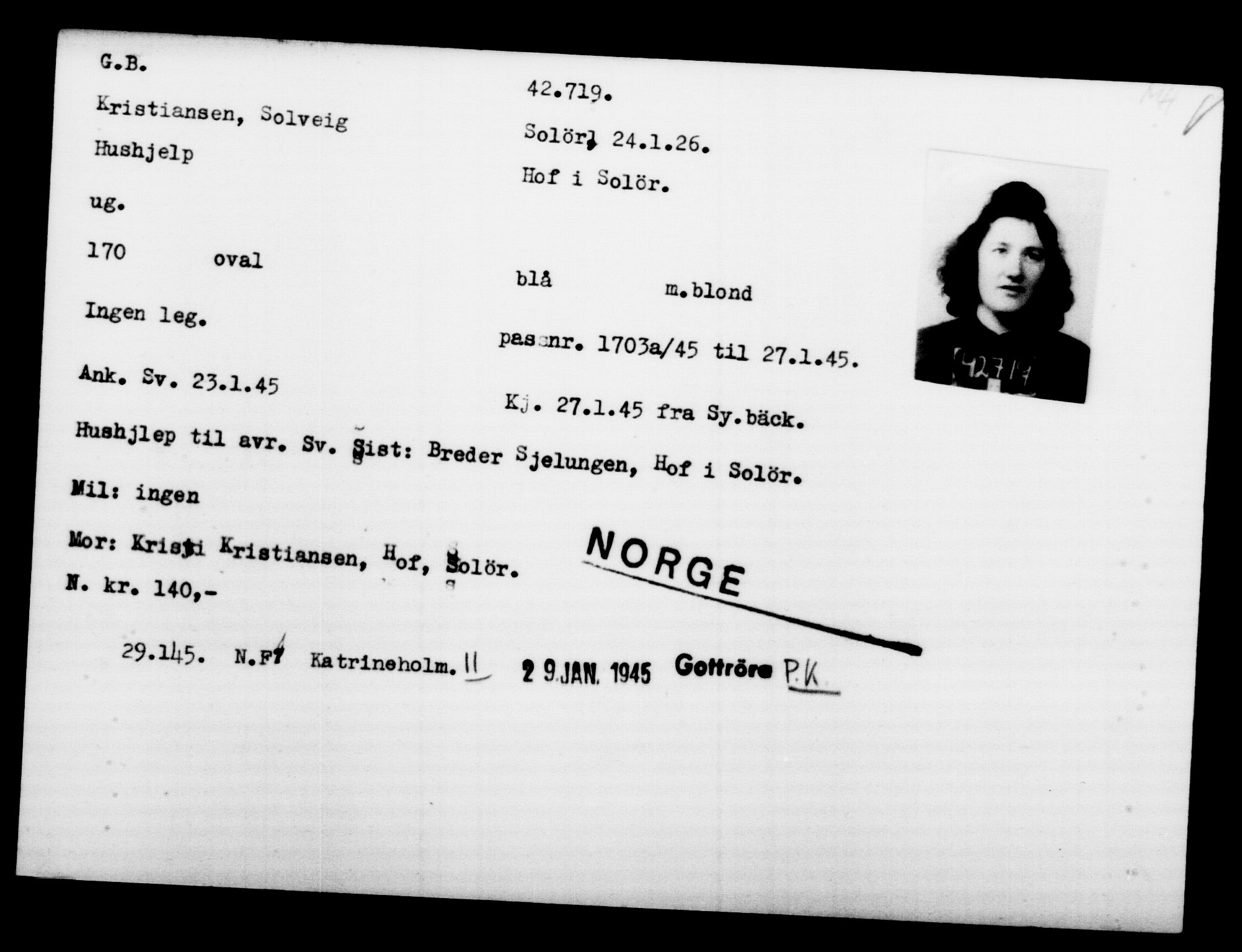RA-S-6753: Utenriksstasjonene, Legasjonen i Stockholm, Flyktningkontoret V: Mikrofilm Va: Kjesäterkartoteket L0016: Kjesäterkartoteket, flyktninger med registreringsnr. 40700-43479 Flyktninger til Sverige 1940-1945