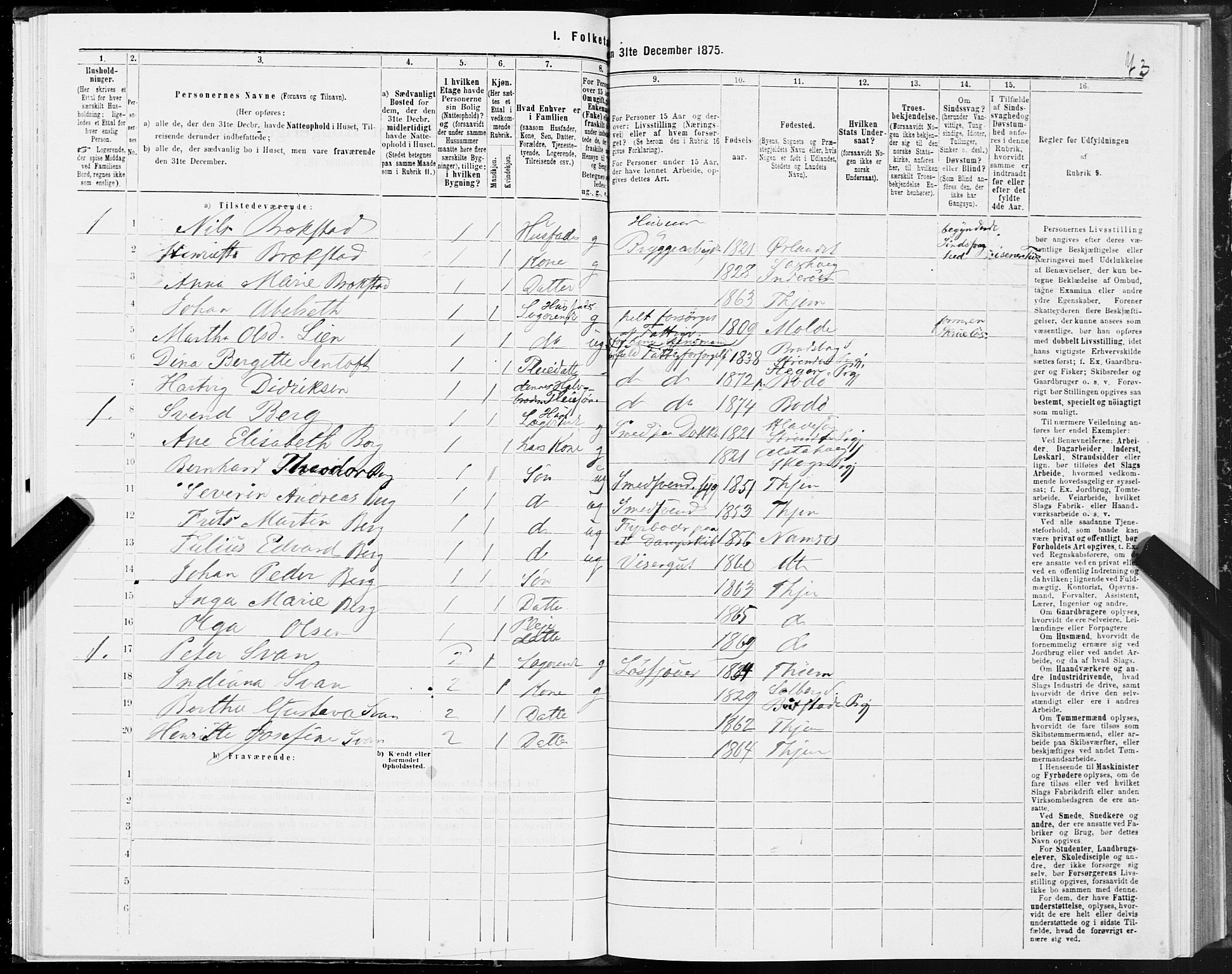 31.12.1875Sør-Trøndelag fylke Trondheim komm. Trondheim kjøpstad besto i 1875 av Domkirkens, Vår Frue Kirkes og Bakklandets menigheter. Om registerhenvisningene: II-16 svarer til side 2016, III-157 svarer til side 3157 osv.FolketellingerFolketellingen 1875PersonopplysningerStatlige arkiverInstitusjoner under departementene