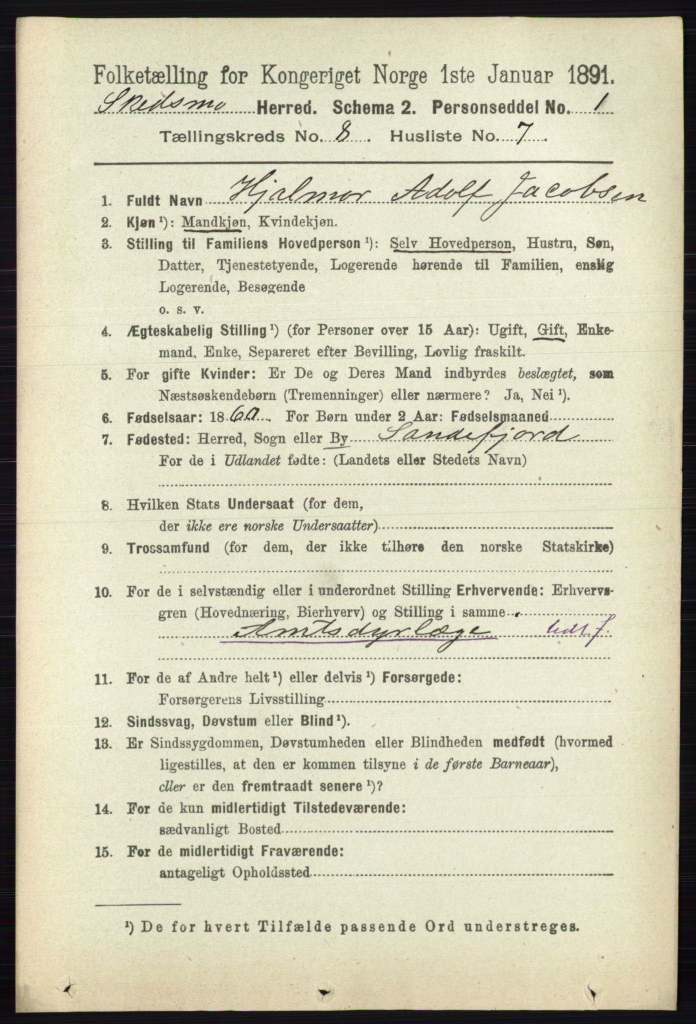 0002: Skedsmo: Tellingskrets 1 Statlig folketelling 01.01.1891 Akershus fylke