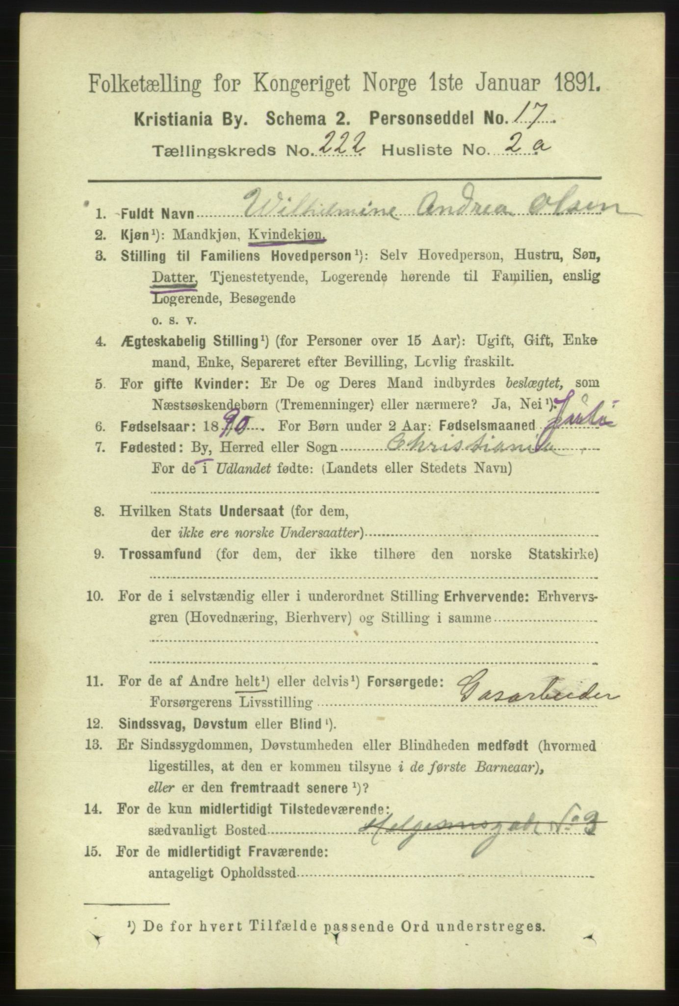 Folketelling 1891 for 0301 Kristiania kjøpstad, Astaref: AV/RA-S-2231/E/Ea/L0699/0001