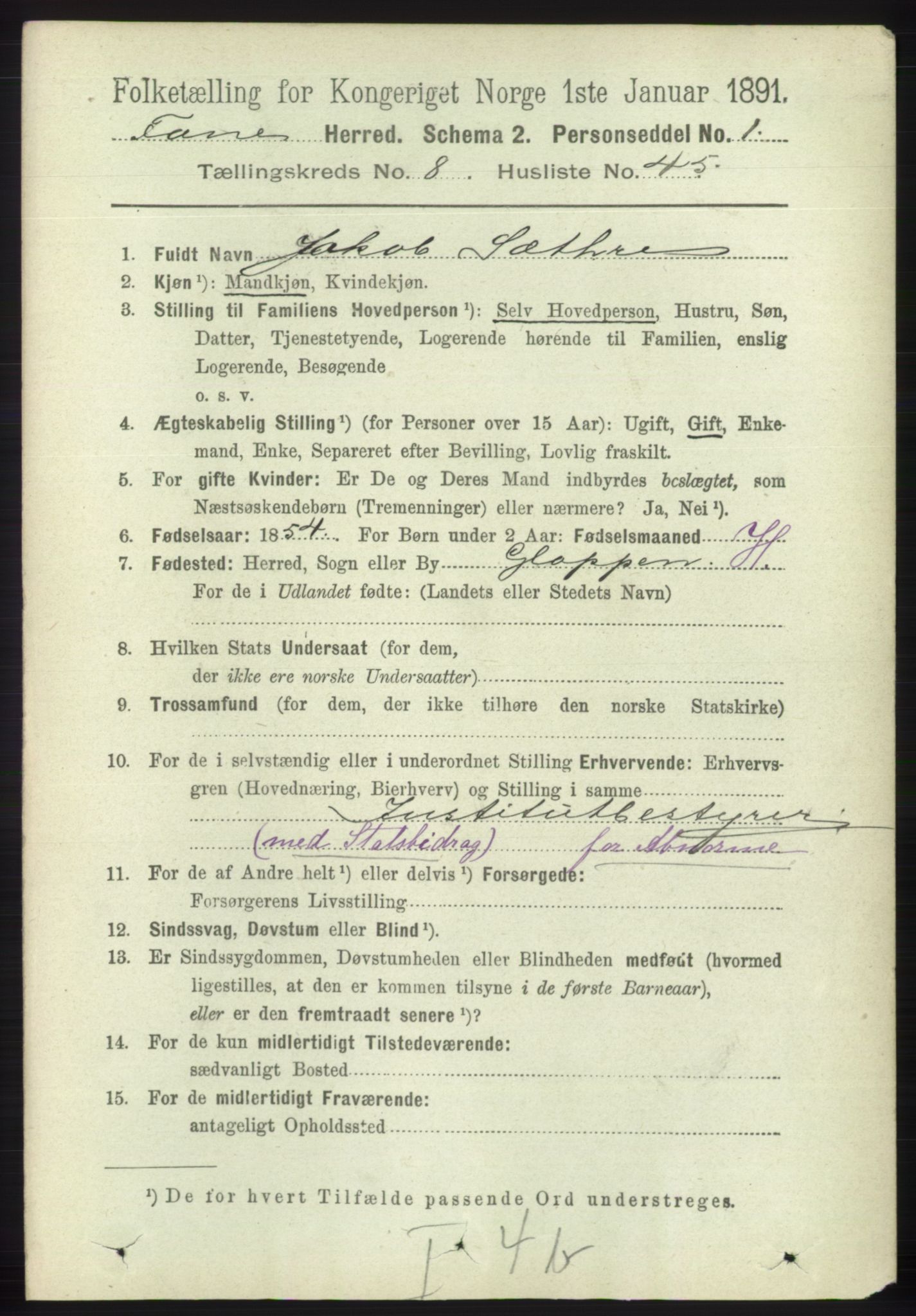 Folketelling 1891 for 1249 Fana herred, Astaref: AV/RA-S-2231/E/Ea/L0385/0003