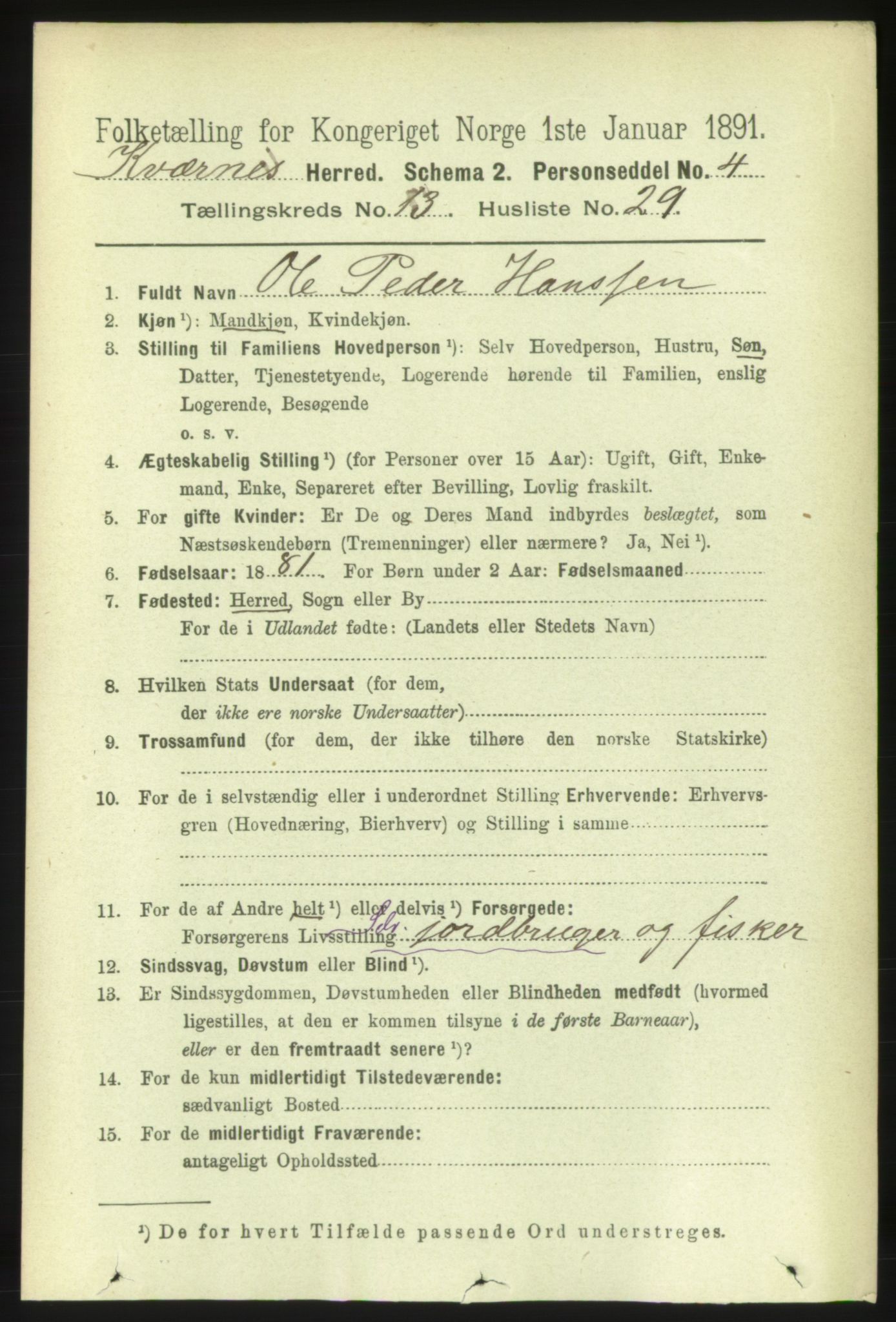 0002: Kvernes: Tellingskrets 1-4 Statlig folketelling 01.01.1891 Møre og Romsdal fylke