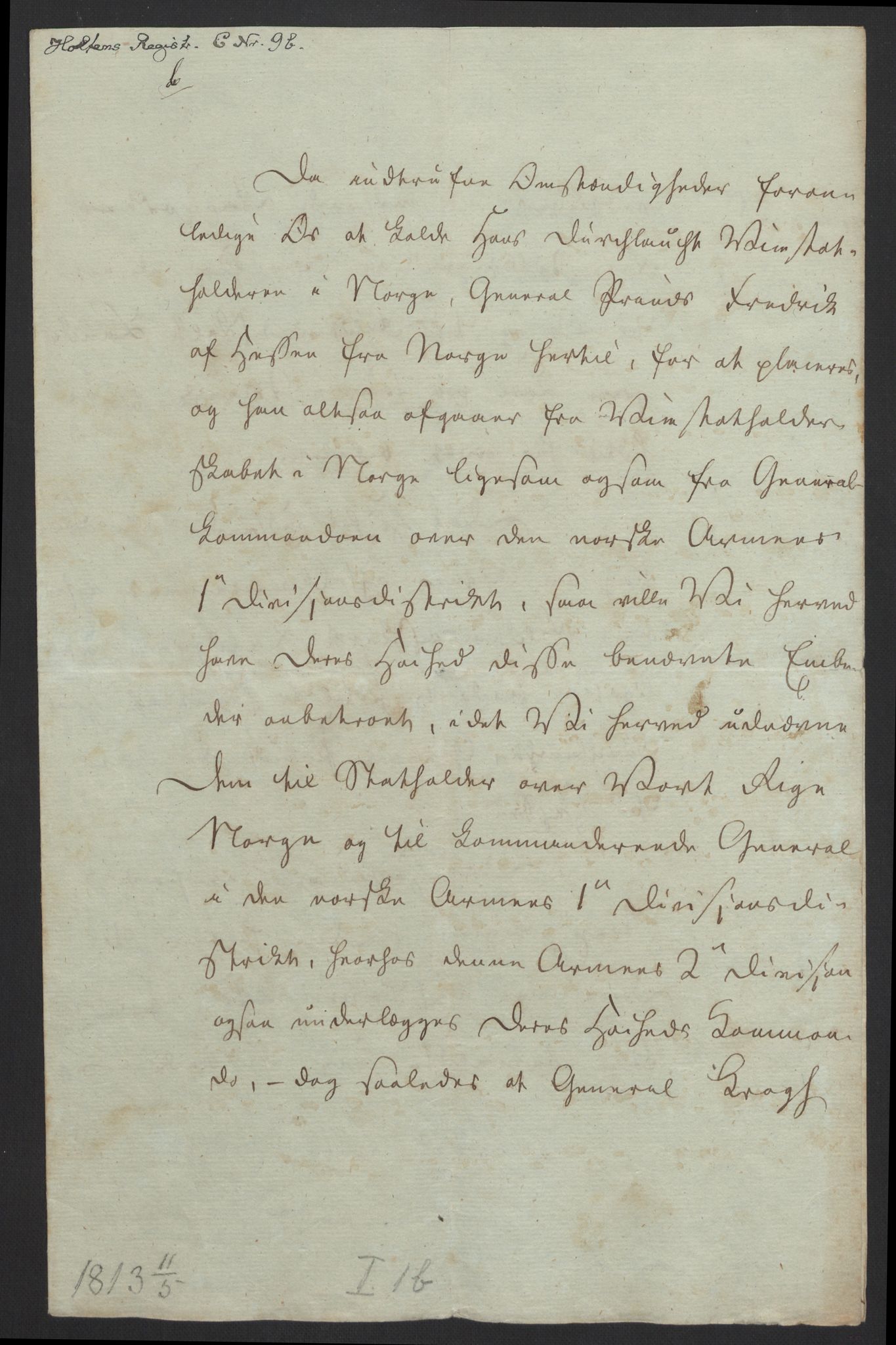 Christian Frederik, Oppholdet i Norge, Perioden fra Christian Frederiks stattholderskap og generalkommando, nr. 203: Saker vedrørende overtakelsen av stattholderskapet og generalkommandoen i Norge, 1813, Astaref: AV/RA-EA-5938/F/Fa/L0203
