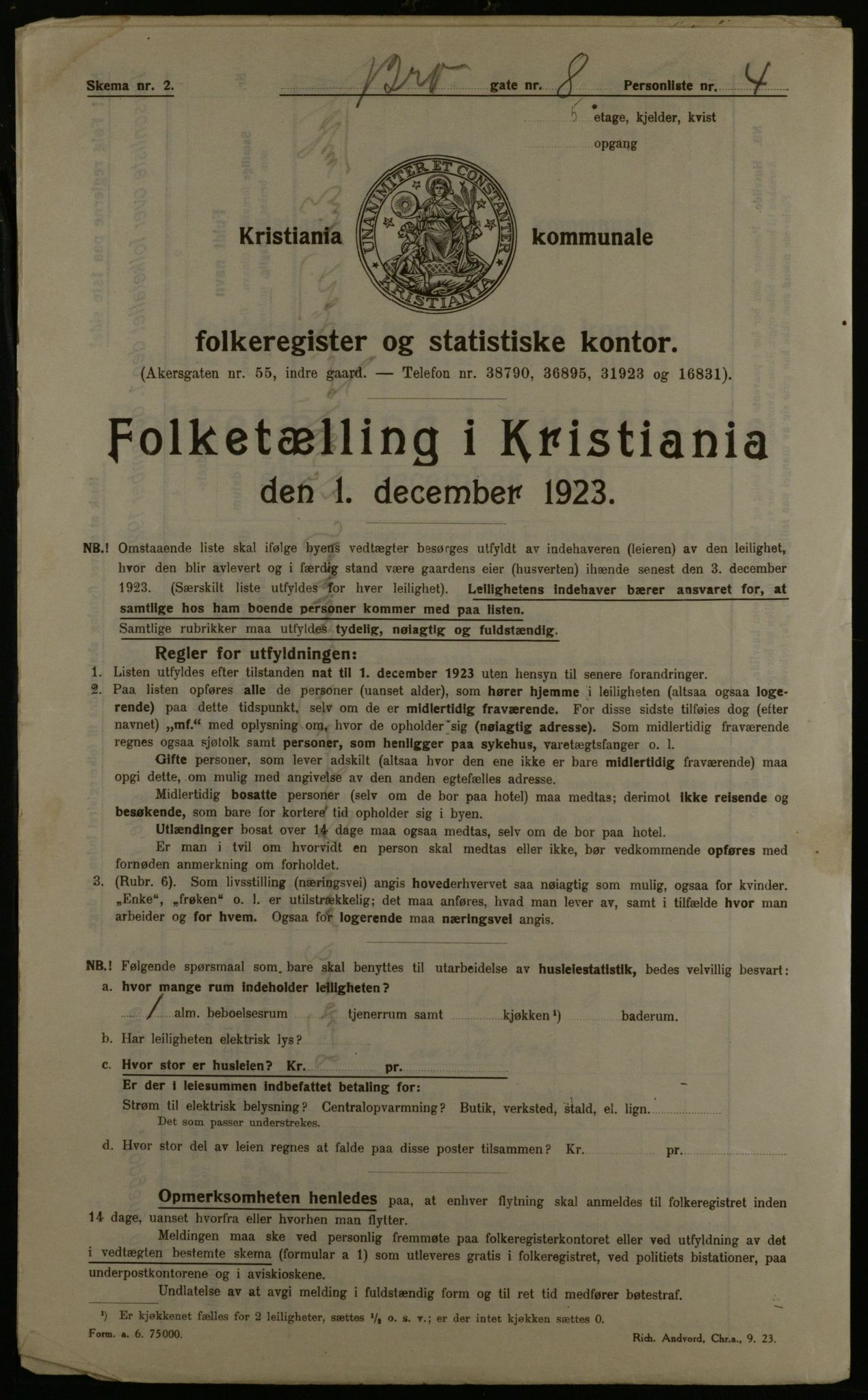 Kommunal folketelling 1.12.1923 for Kristiania, Astaref: OBA/A-20057/Gbv
