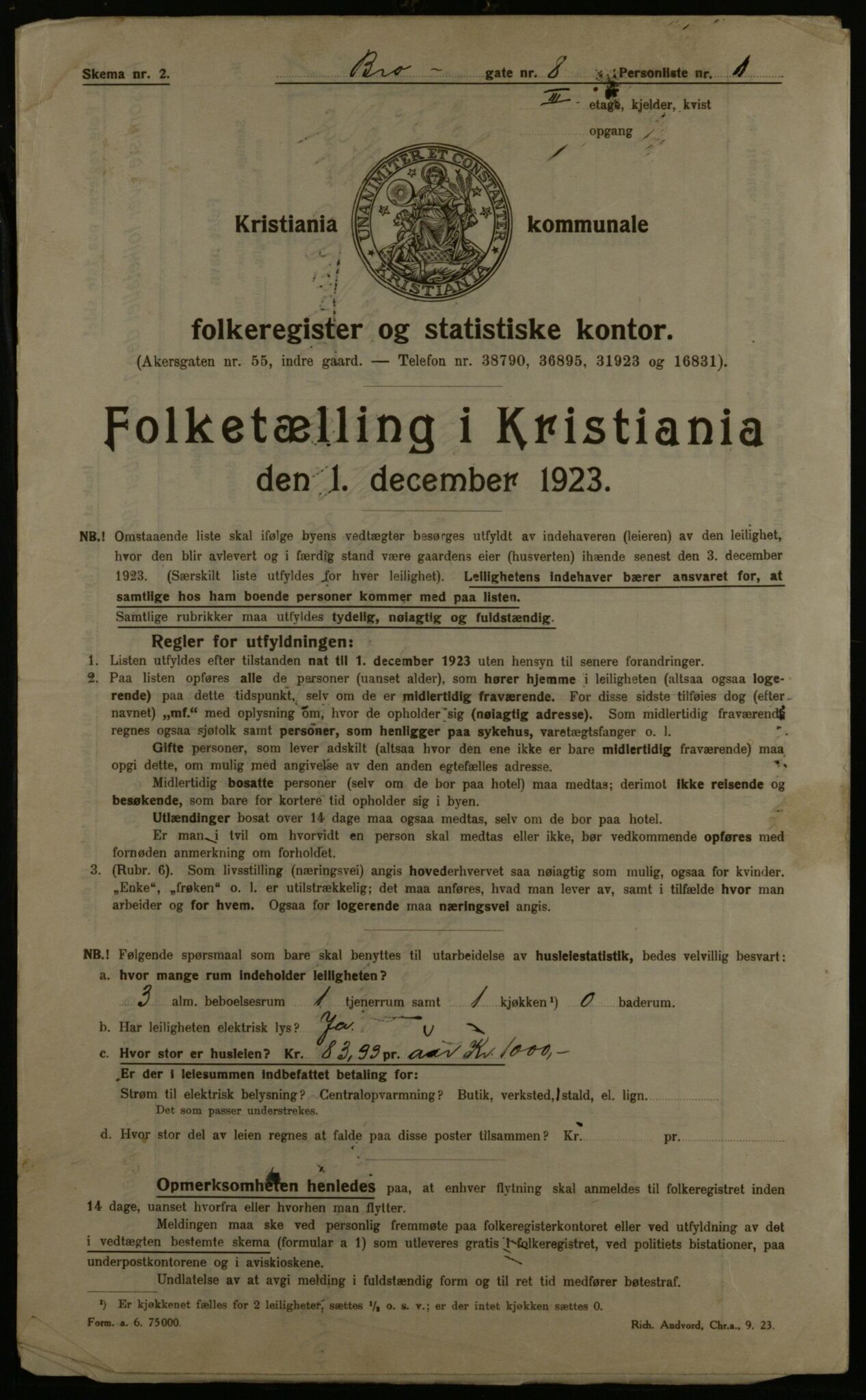 Kommunal folketelling 1.12.1923 for Kristiania, Astaref: OBA/A-20057/Gbv