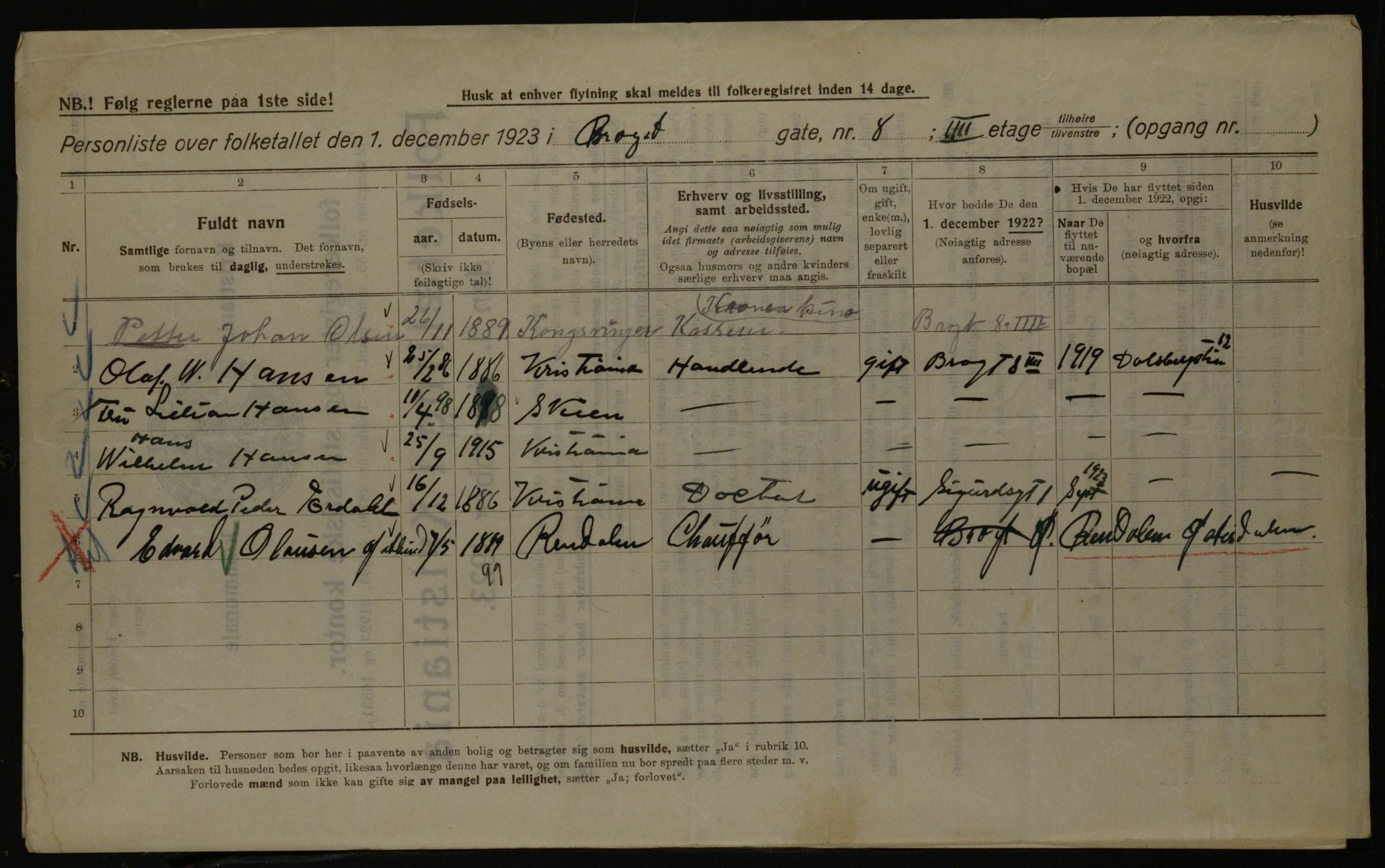 Kommunal folketelling 1.12.1923 for Kristiania, Astaref: OBA/A-20057/Gbv