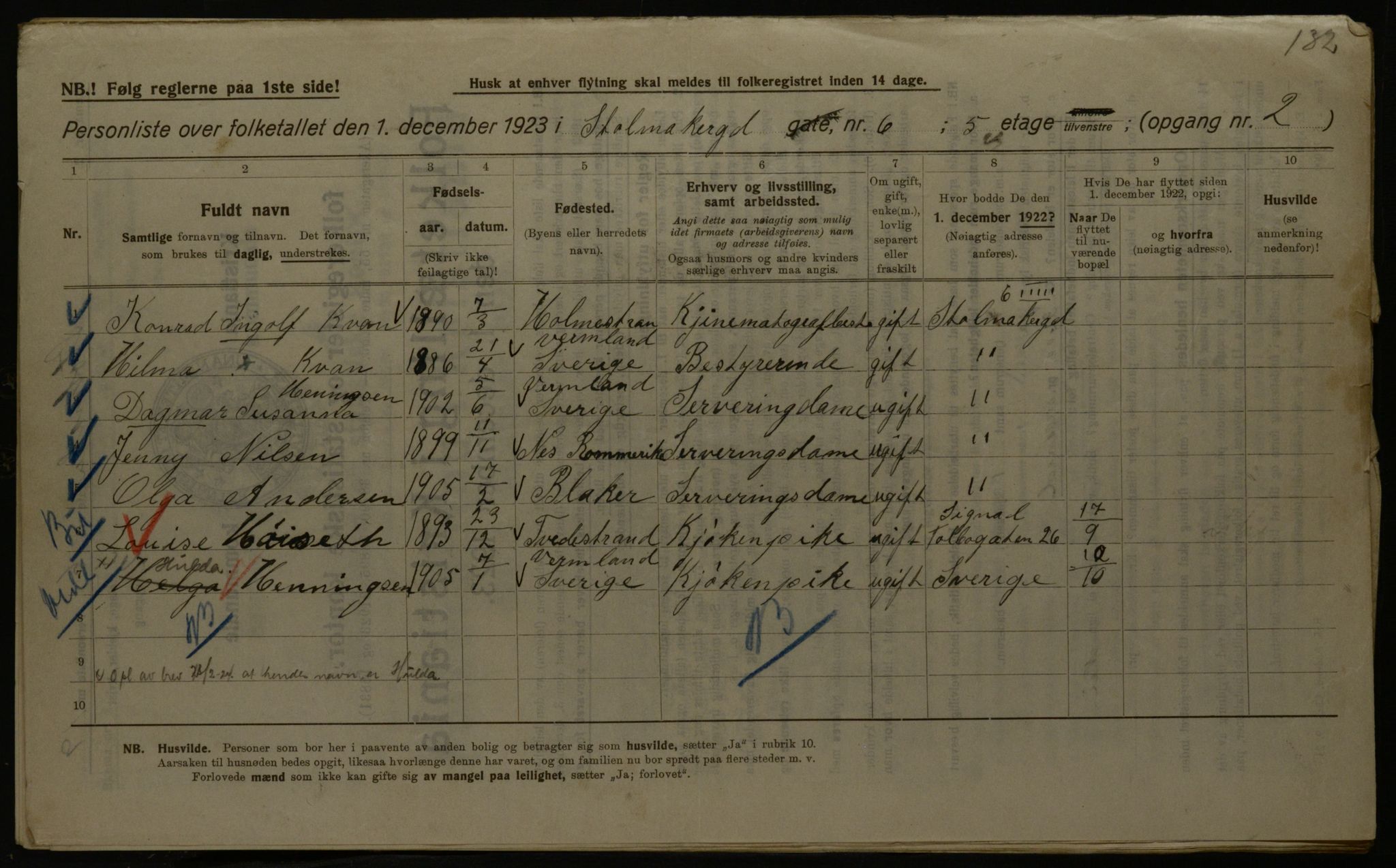 Kommunal folketelling 1.12.1923 for Kristiania, Astaref: OBA/A-20057/Gbv
