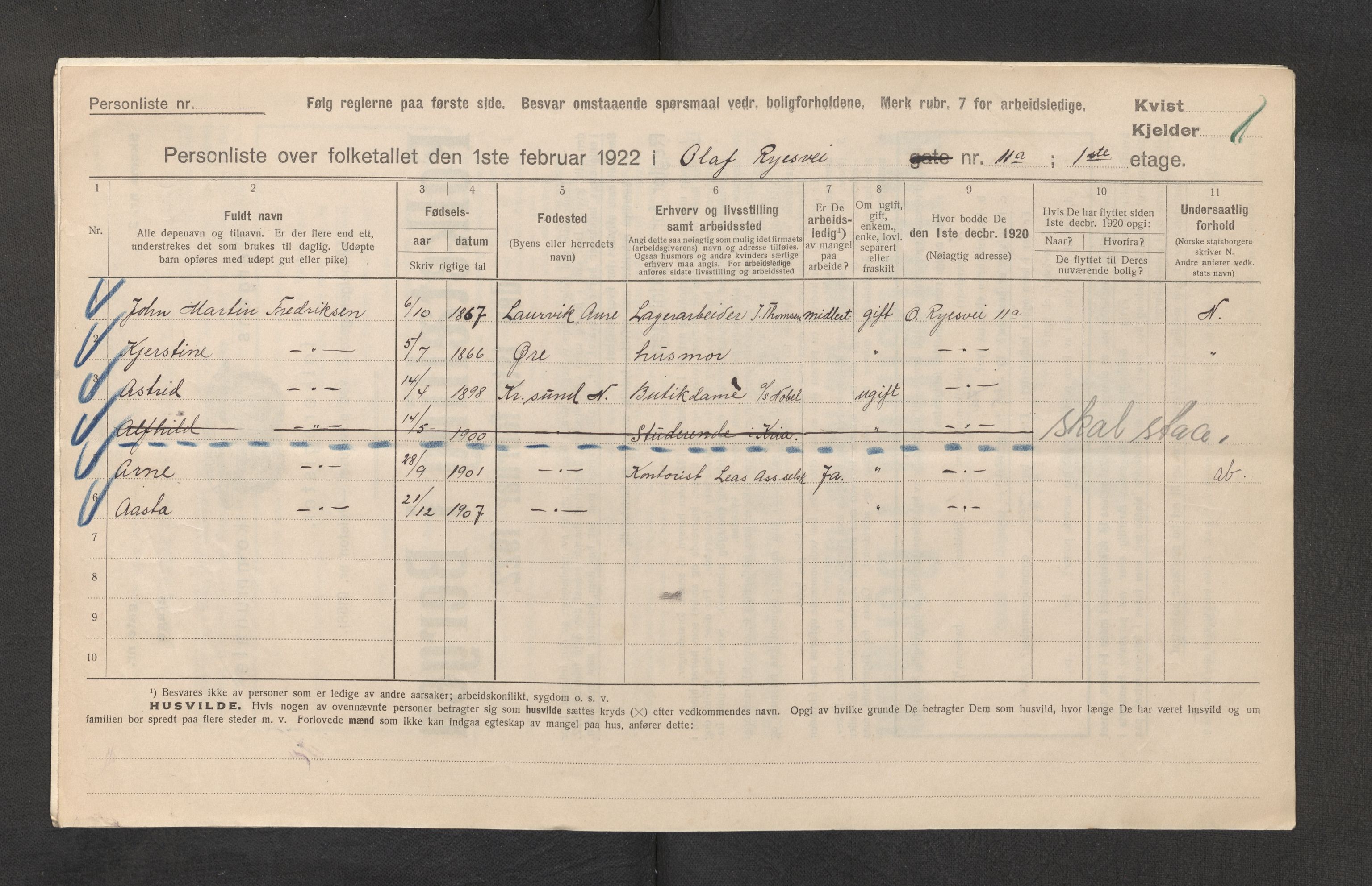 SAB-A-17201: Bergen folkeregister F: Folketelling Fc: Bergen kommunale folketelling 1922 Kommunal folketelling