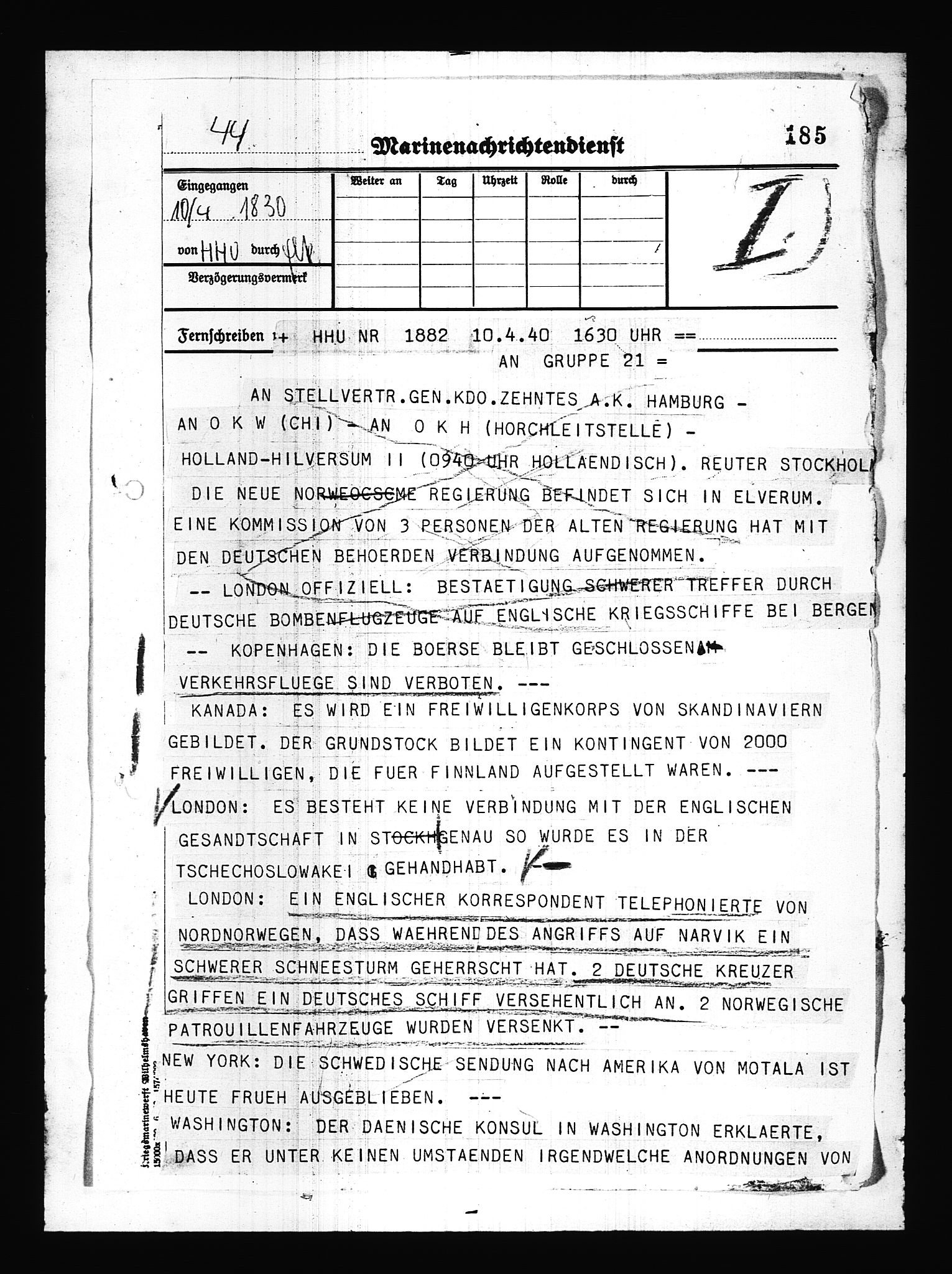 Documents Section, Mikrofilmer, nr. 85: Amerikansk mikrofilm "Captured German Documents". Box No. 724. FKA jnr. 615/1954., Astaref: AV/RA-RAFA-2200/V/L0085