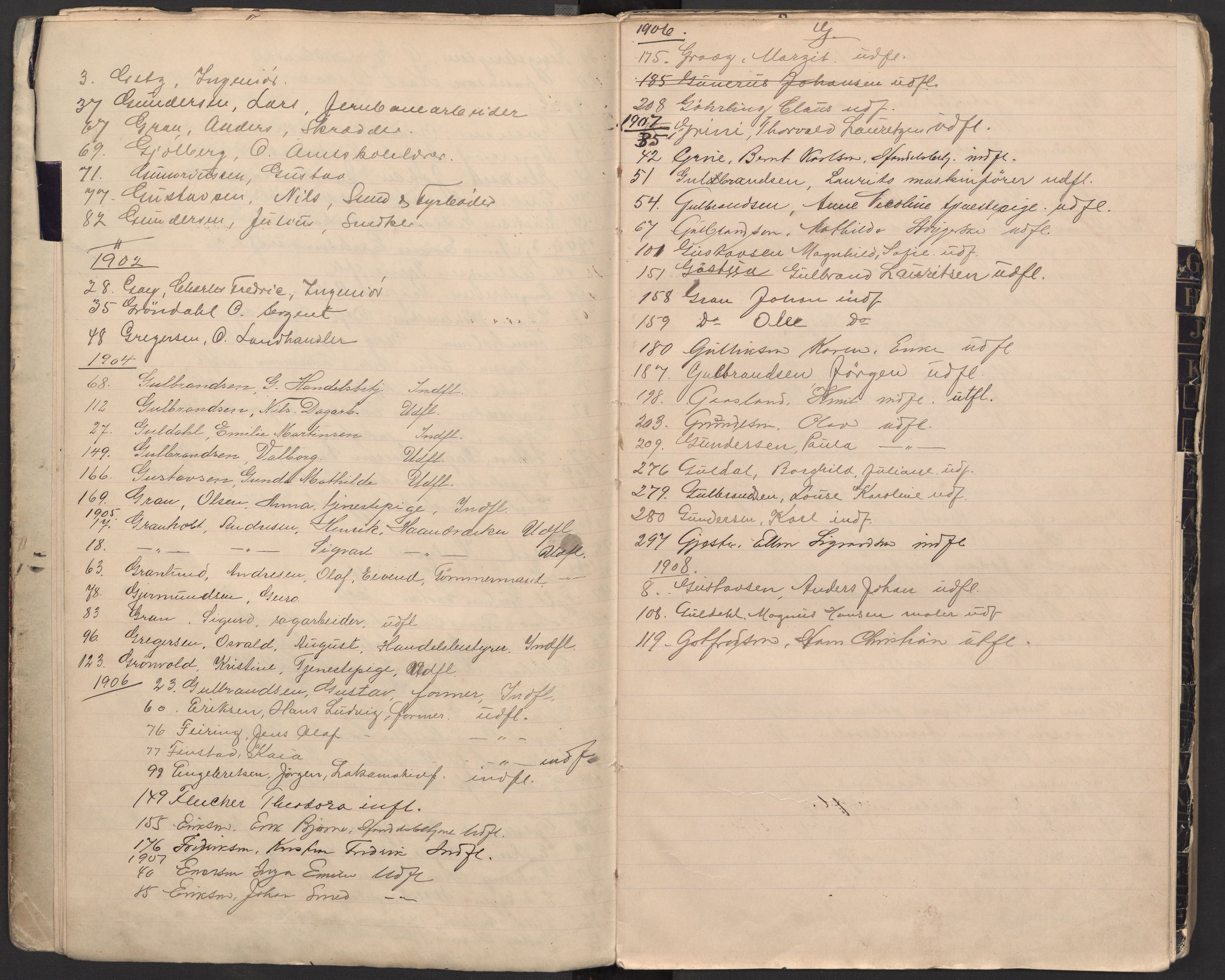 Skedsmo lensmannskontor, Flyttingsprotokoller nr. 1: Flyttingsprotokoll 1901-1908, Astaref: AV/SAO-A-10089/K/Kd/Kda/L0001