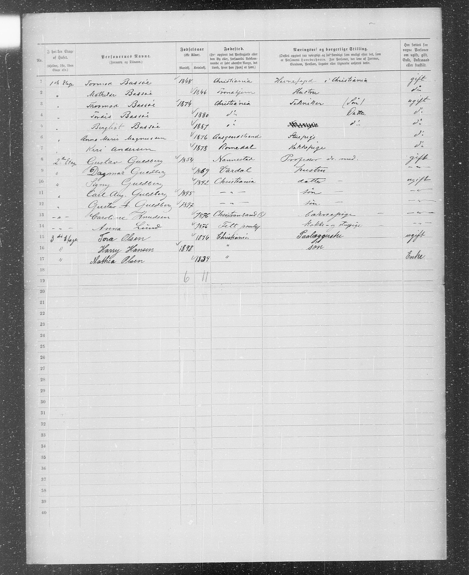 Kommunal folketelling 31.12.1899 for Kristiania kjøpstad, Astaref: OBA/A-20057/Gba