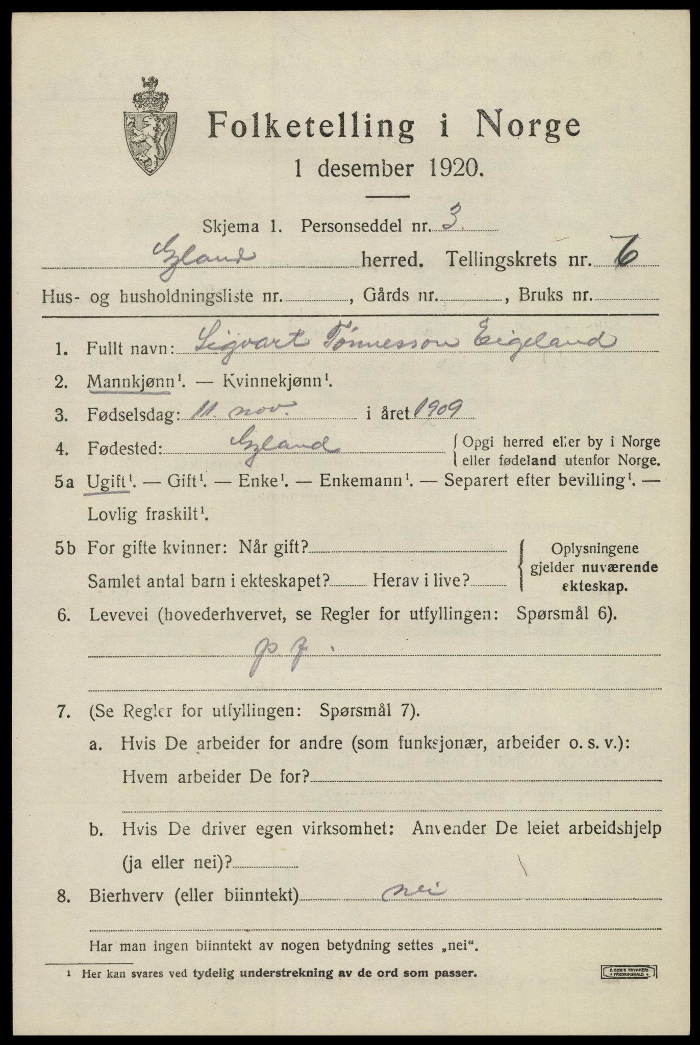 - - Statlig folketelling 01.12.1920 Vest-Agder fylke