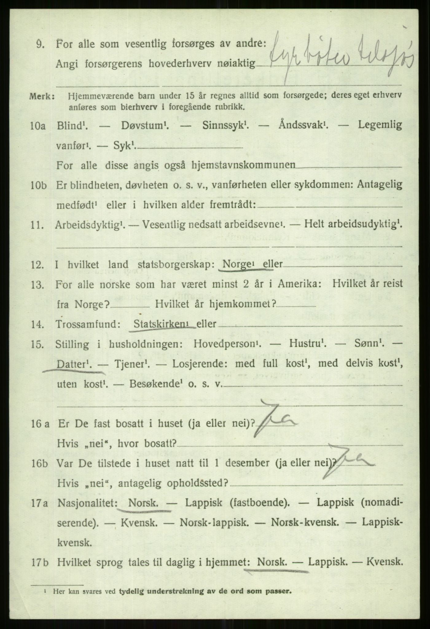 - Folketellinger Folketellingen 1920 Personopplysninger Statlige arkiver Institusjoner under departementene