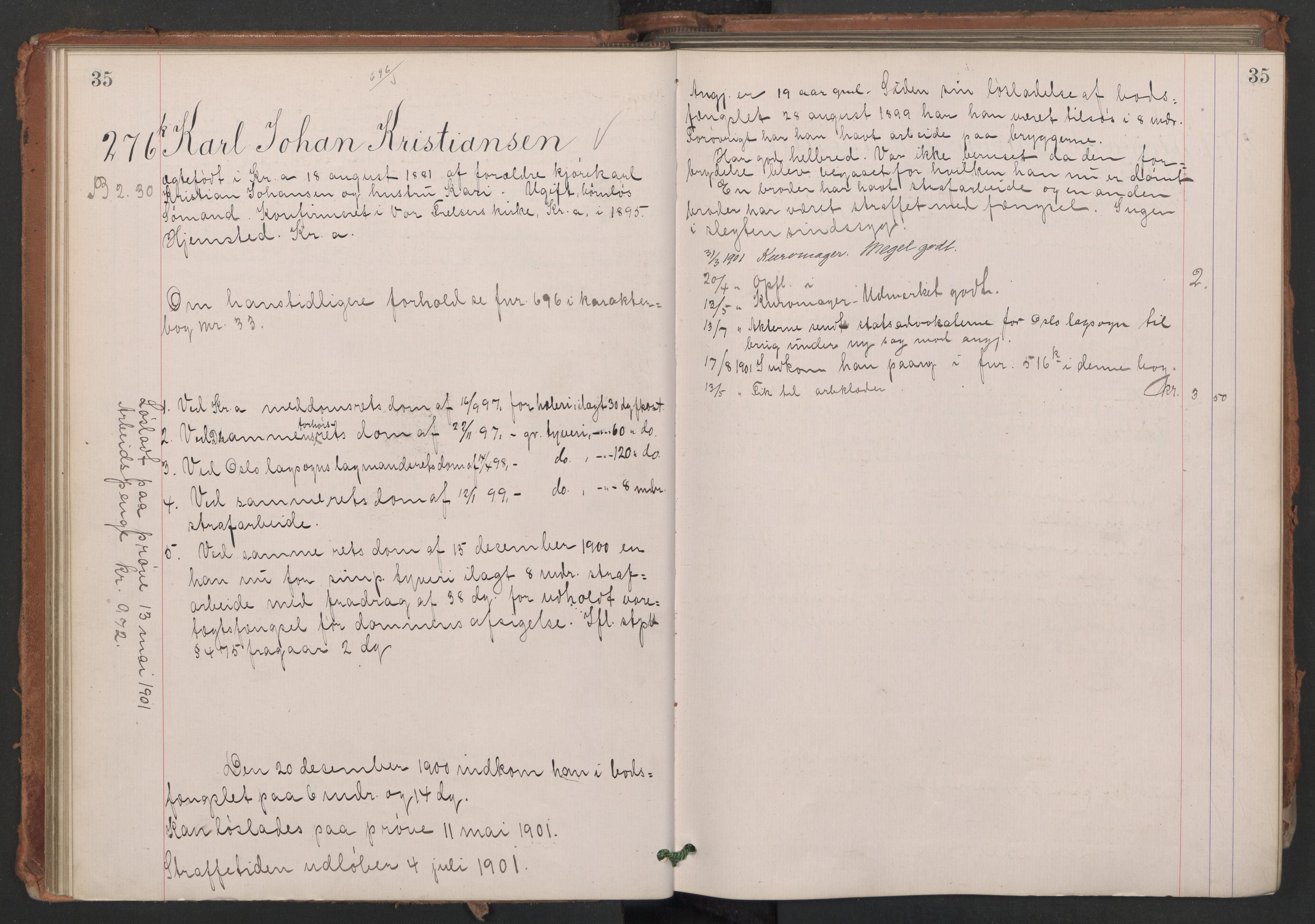 Botsfengslet, Dbb - Karakter-/fangebøker, nr. 35: 1900-1901, Astaref: AV/RA-S-1539/D/Db/Dbb/L0035
