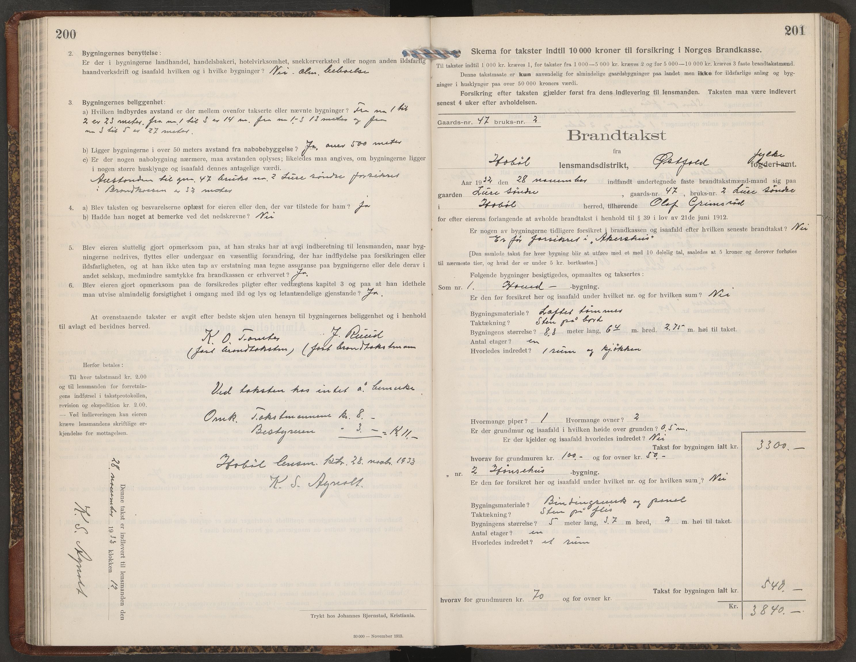 Norges brannkasse, Branntakster Hobøl II, Branntakstprotokoll, nr. 1: 1913-1946, Astaref: AV/SAO-A-11363/F/Fb/L0001