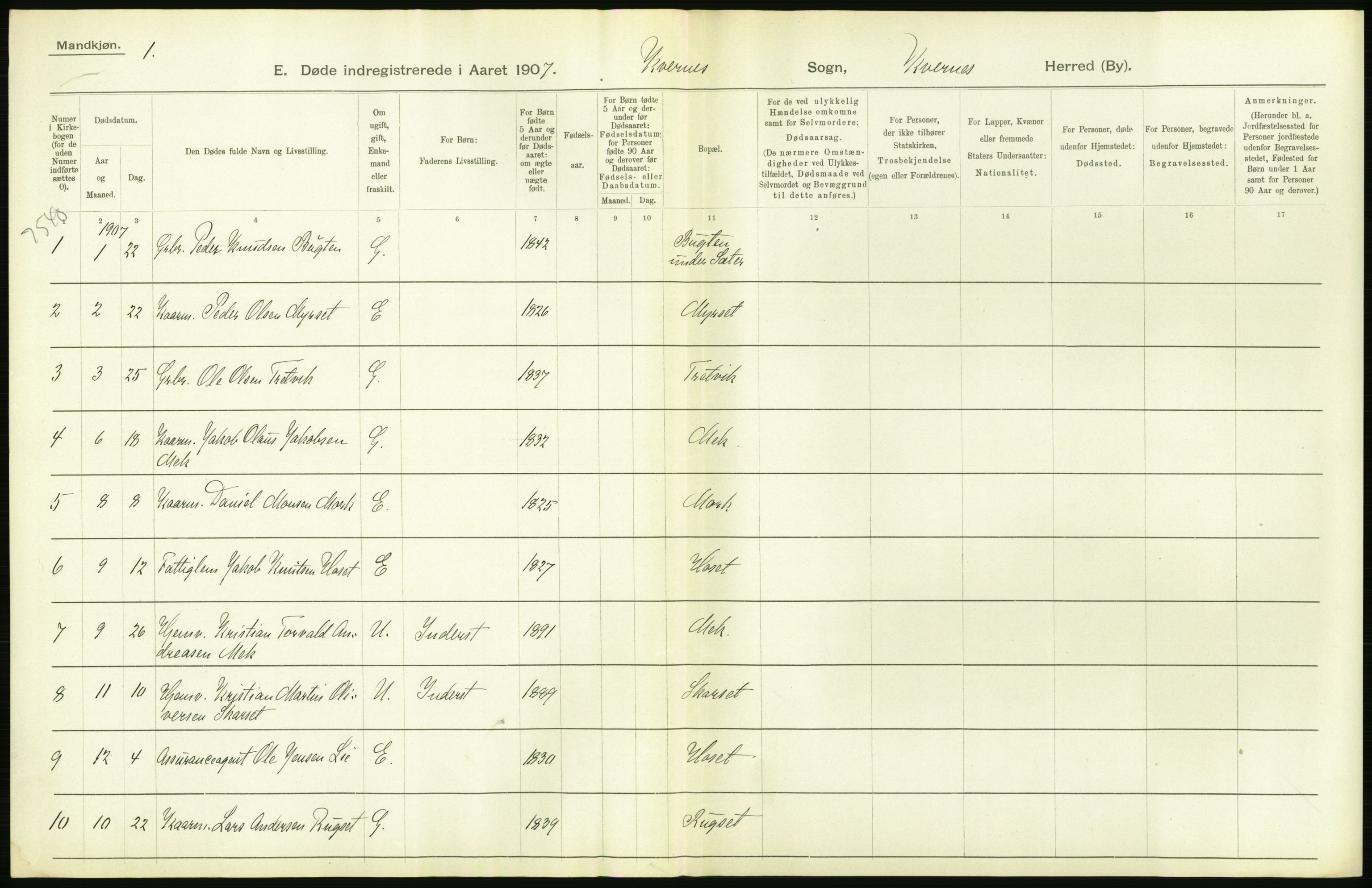 Statistisk Sentralbyrå, Folkemengdens bevegelse (Serie FB) 1907, nr. 37: Romsdals amt, døde og dødfødte, Astaref: AV/RA-S-2228/D/Df/Dfa/Dfae/L0037