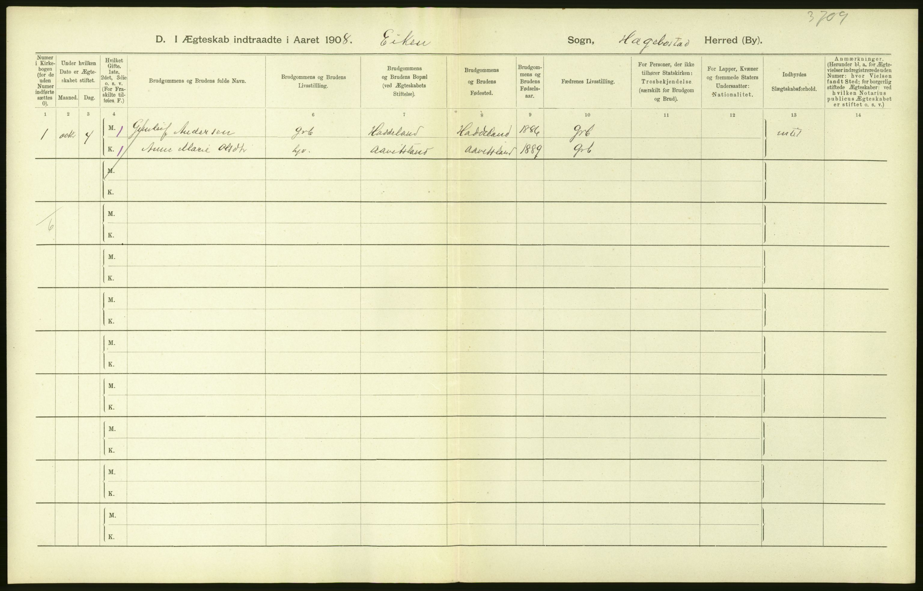 Statistisk Sentralbyrå, Folkemengdens bevegelse (Serie FB) 1908, nr. 23: Lister og Mandals amt, Astaref: AV/RA-S-2228/D/Df/Dfa/Dfaf/L0023