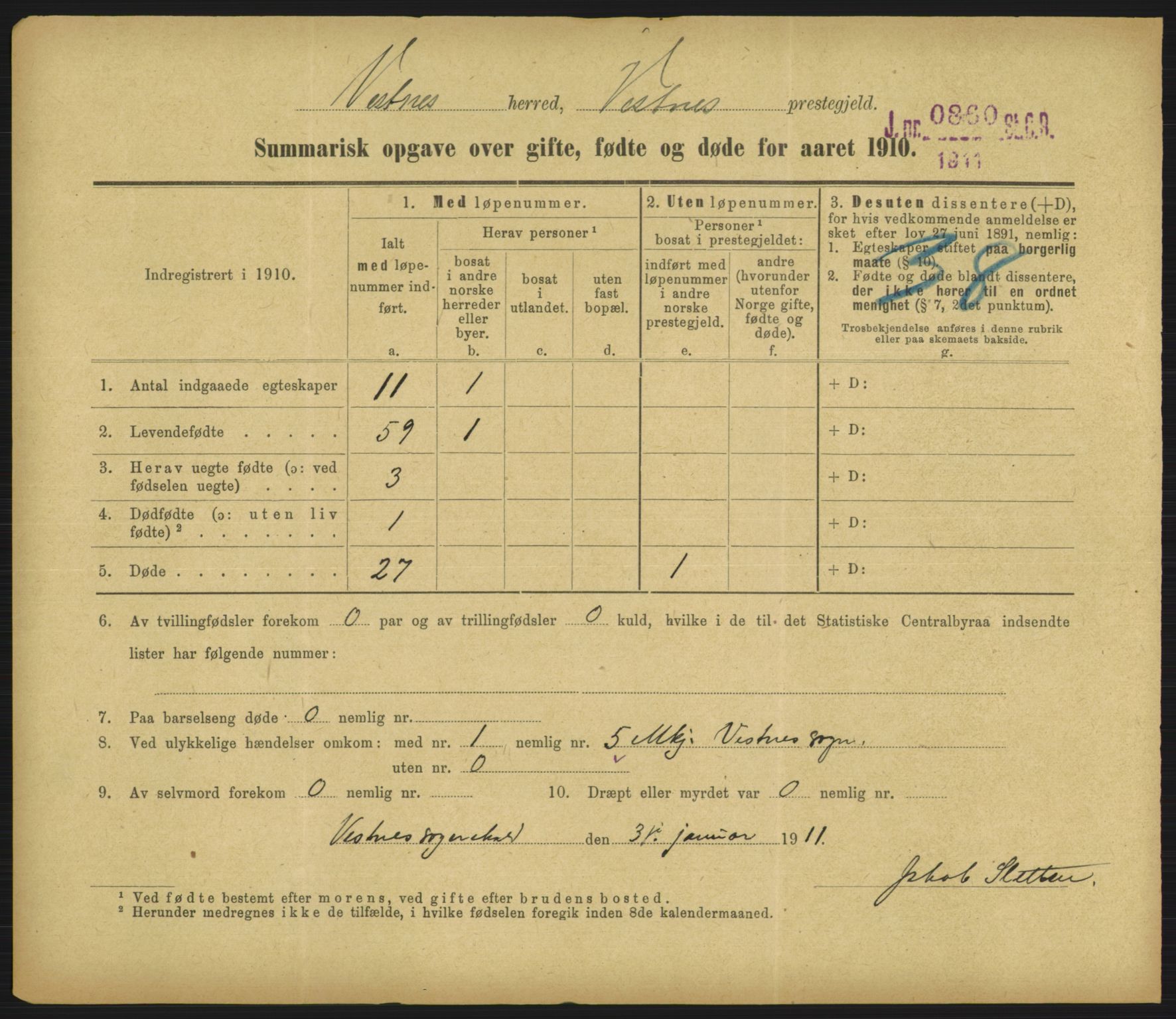 Statistisk Sentralbyrå, Folkemengdens bevegelse (Serie FB) 1910, nr. 46: Summariske oppgaver over fødte, gifte og døde for hele landet, Astaref: AV/RA-S-2228/D/Df/Dfa/Dfah/L0046