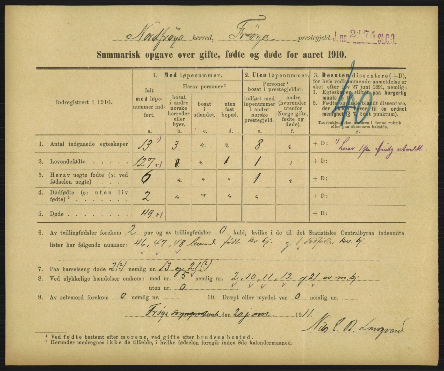 Statistisk Sentralbyrå, Folkemengdens bevegelse (Serie FB) 1910, nr. 46: Summariske oppgaver over fødte, gifte og døde for hele landet, Astaref: AV/RA-S-2228/D/Df/Dfa/Dfah/L0046